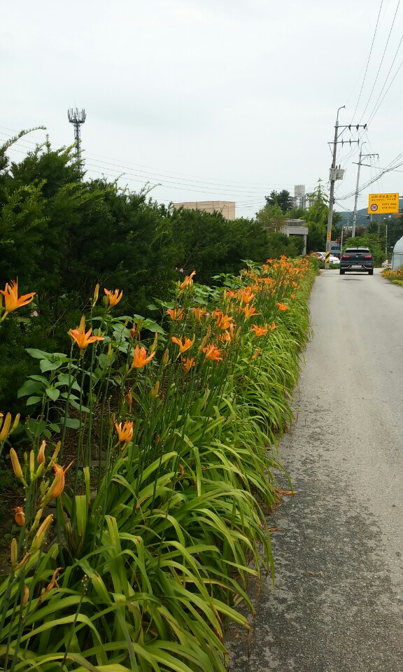 돌아가는 길은 마을길이라 작고 복잡하다. 개군초등학교도 있고 길옆을 왕원추리꽃으로 장식한 집을 지나갔다.
