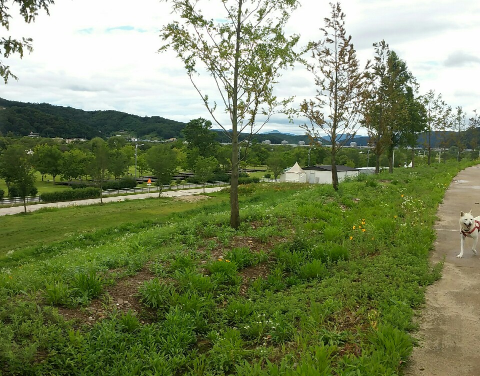나는 왼쪽으로 해서 걸었다. 자전거도로와 인도가 나뉘어져 있어 개를 데리고 산책하는데도 편리하다.