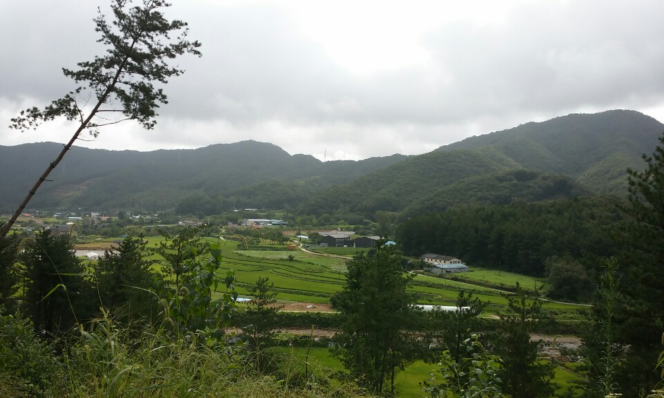 나는 갈래길에서 위로 올라가면서 가니 마을을 내려다 보며 걷는 길이었다. 아침 나절이라 시원하고 오순도순 모여있는 집들과 담, 텃밭과 좀 넓은 들깨밭, 하천을 건너가도록 놓은 작은 다리 등이 소박한 운치를 주었다.