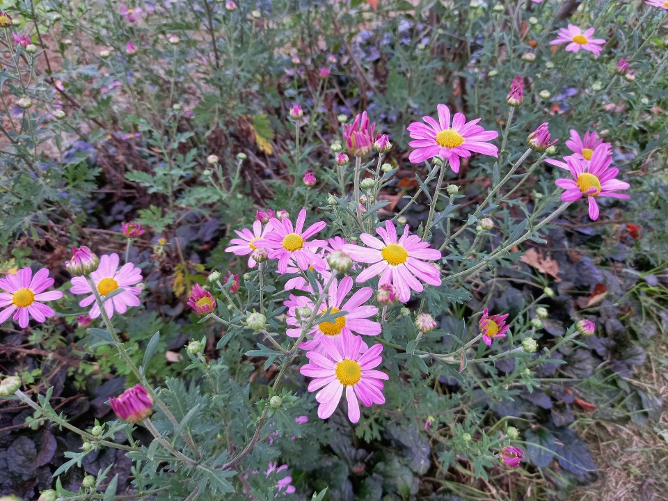 아로니아 옆에 옮겨놓은 분홍 소국도 가냘픈 몸매로 바람에 날리고 있다. 작년엔 가지가 너무 길어 볼품이 없어 실망했었던 꽃이다. 허긴 내 잘못이다. 그늘이 많이 지는 나무들 옆에 심어놓고 잘 자라길 바랐으니 그렇다.