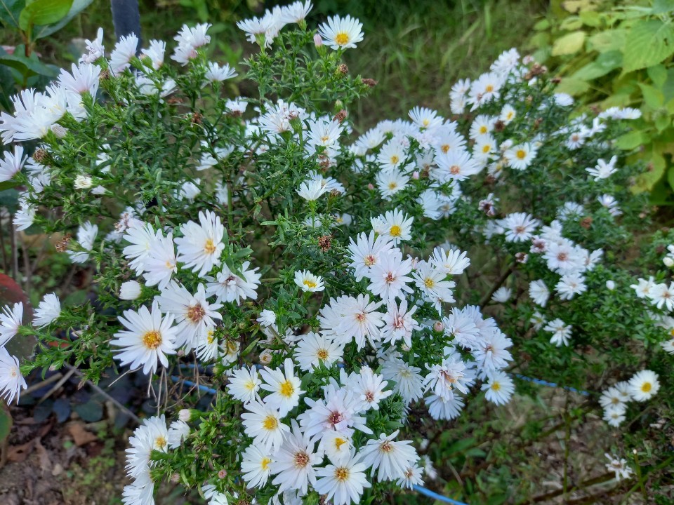 따스한 봄날 싹을 틔워 뜨거운 여름을 견딘 백일홍이 아직도 한창이다. 이웃집에서 나눠준 미국쑥부쟁이도 꽃밭 구석에서 하얗게 피어 하얀 꽃다발을 이룬다.