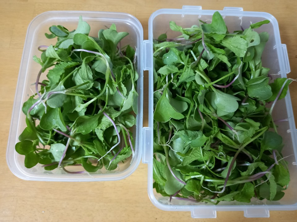 새싹이 조금씩 커나가겠지만 매 끼마다 새싹 셀러드를 해먹으면 즐거운 식사시간이 될 것이다.