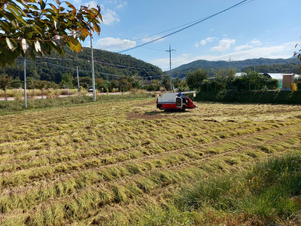 왼편의 마을길로 또 들어가서 마을 구경을 하고 나왔다. 어딜 가나 누렇게 익은 벼이삭이 반가히 우릴 맞는다. 왕창리의 마을 분위기를 마음에 담는다. 벼베는 풍경도 오랫만에 만나니 신기하다. 힘들여 농사지은 것을 기계가 쉽게 해준다.