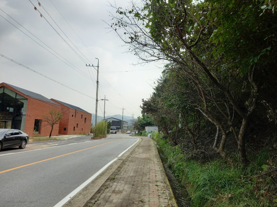 주황색 벽돌로 지은 2층 건물옆 도로변에 주차를 하고 걷기로 했다. 매끈하게 지어진 건물은 카페용도로 지은 것 같다. 요즘은 빈 건물이 많이 발견된다. 안타까운 일이다.