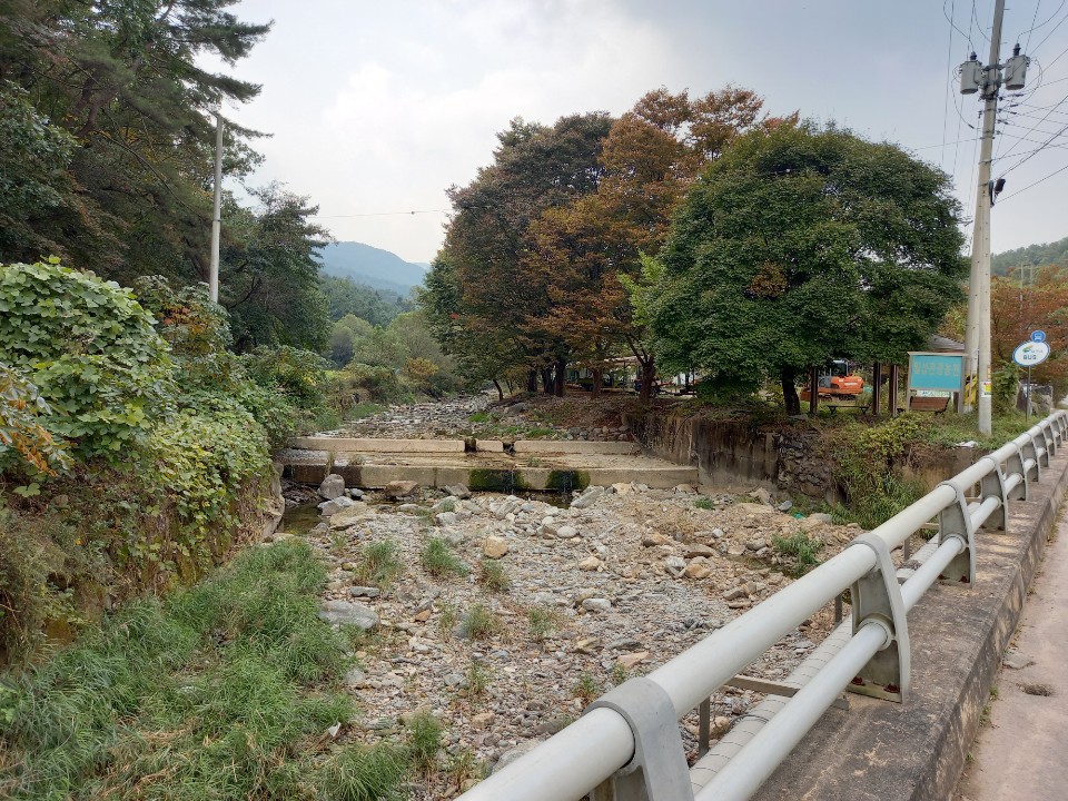 다행히 인도를 블록으로 만들어놔서 편하게 걸어서 문바위유원지 방향으로 갈 수 있었다. 가는 길에 밤나무 가시가 발에 걸릴 정도로 빈 밤송이가 많이 떨어져있어 밤 몇 알을 주워 주머니에 넣는다. 수로바닥에 작지만 통통한 밤들이 떨어져있다. 운동화를 벗고 내려가서 밤을 줍고 싶을 정도로 많았다. 수로에서 올라올 때 조금 힘이 들것 같아 포기하고 걸었다.