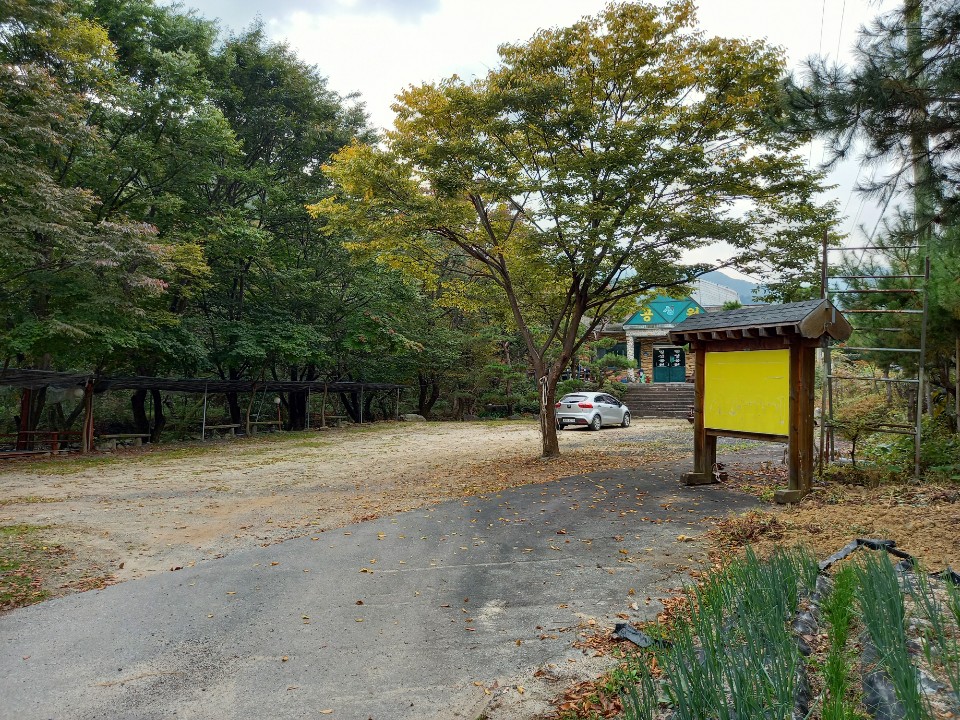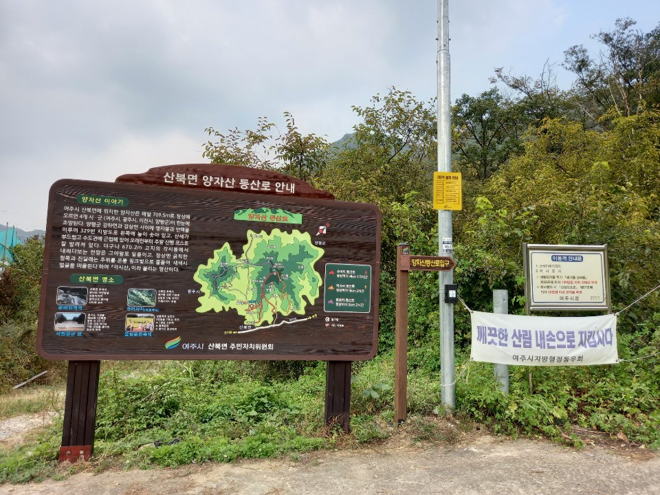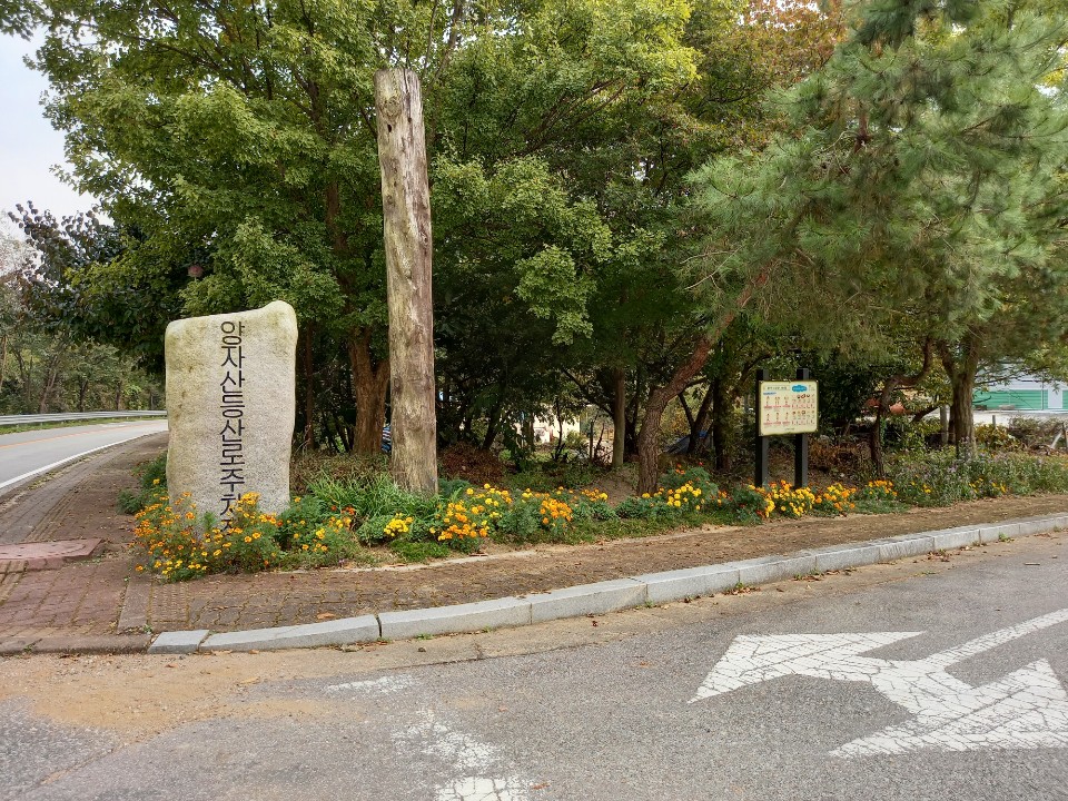 주어리 마을회관 앞에는 양자산등산로주차장 돌표지판이 있다. 주차장이 넓은 것을 보니 예전에는 많은 사람들이 왔던 것 같다. 다시 그런 날이 오리라.
