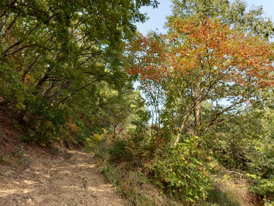 갔던 길로 되돌아가는 건 아니고 가다보면 천진암가는 길과 곤지암 가는 길이 있는 삼거리가 나온다. 천진암가는 길은 조금씩 단풍이 들어간다. 개울가를 지나가니 더 운치가 있고 나무도 무척 등치가 크게 자랐다.