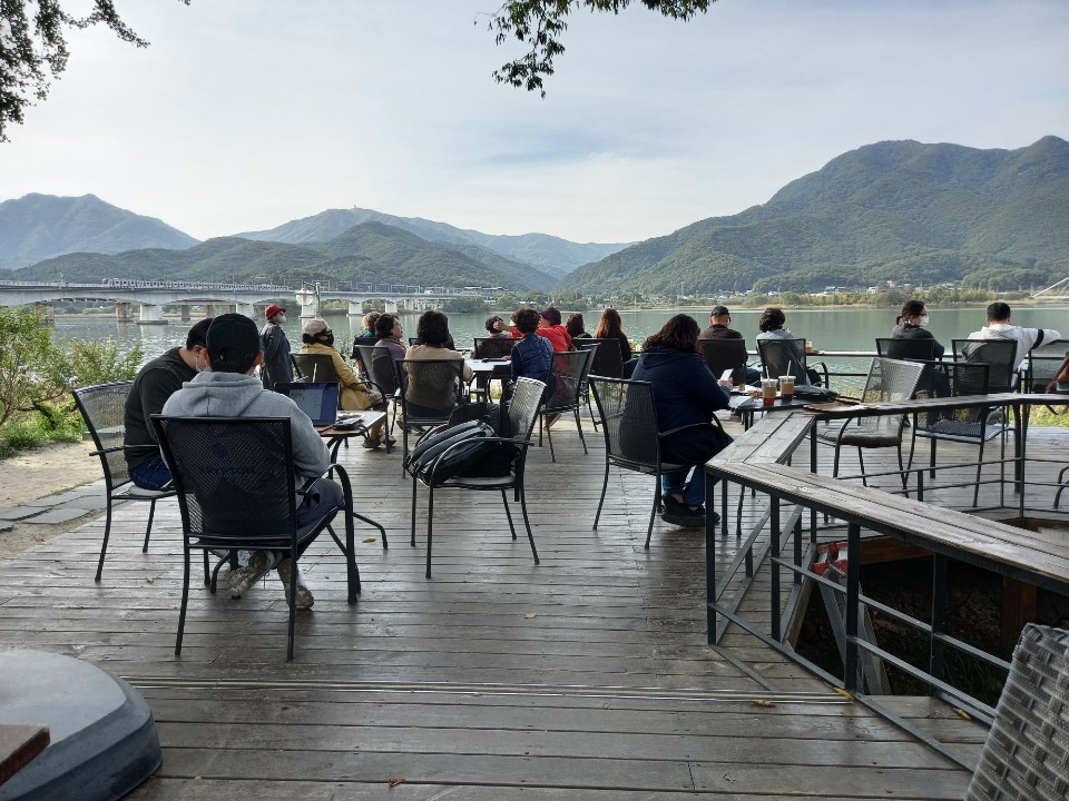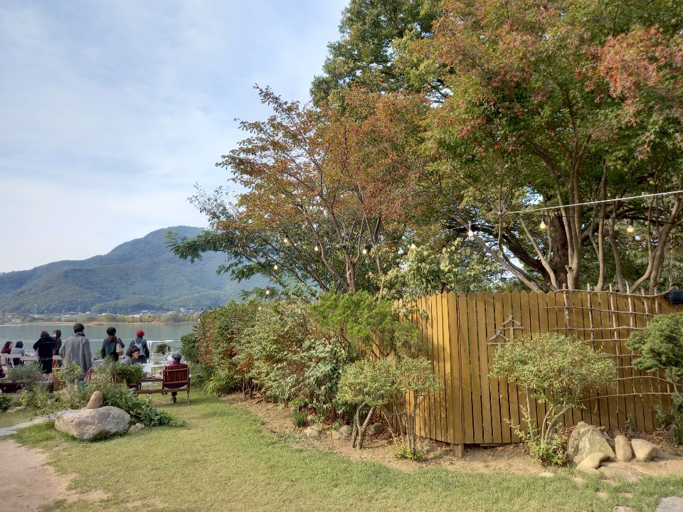 실내도 수수하고 실외도 수수한 북한강이 유유히 흐르는 경치 바로 앞에서 커피를 마신다.