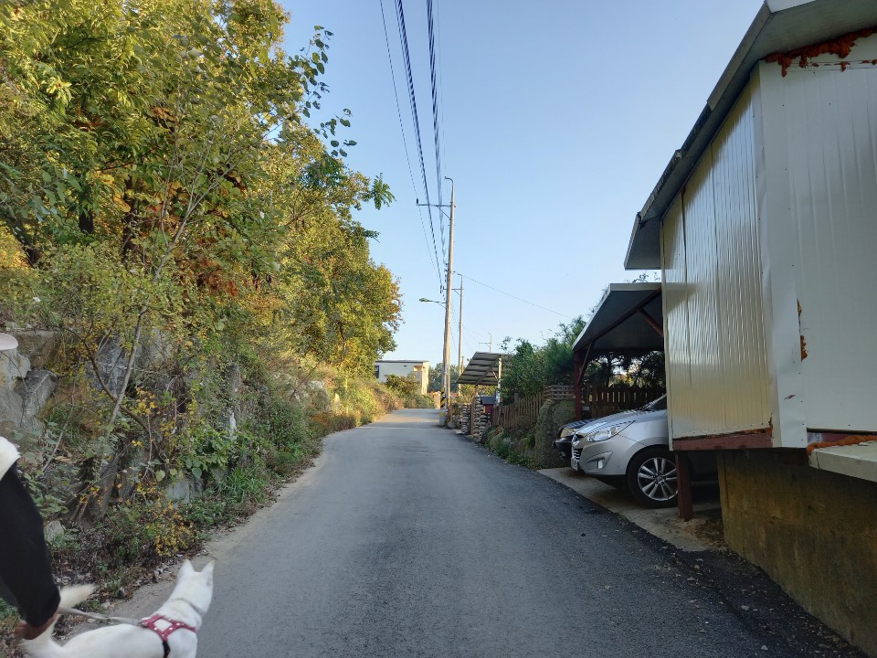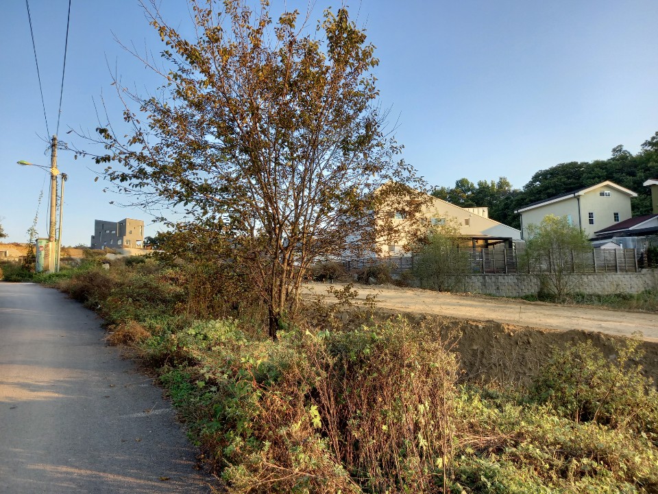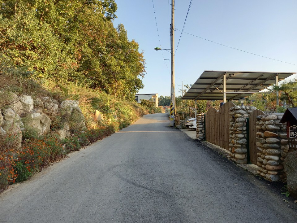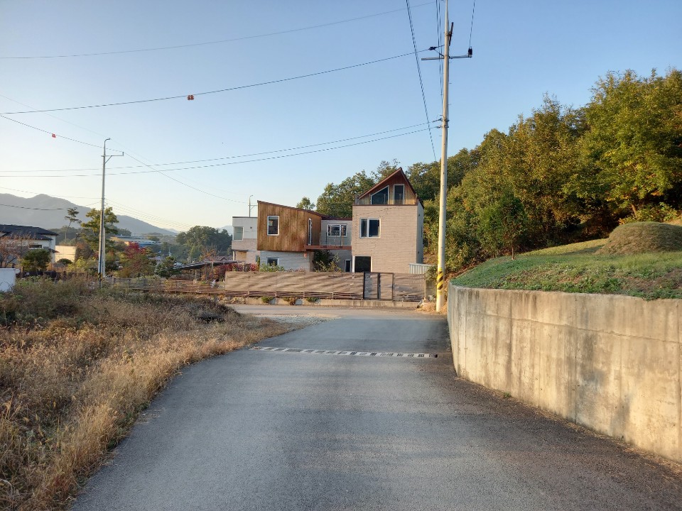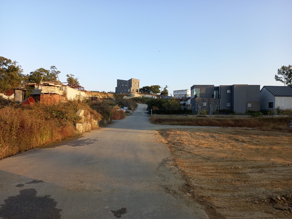 신화1리 마을회관을 거쳐 숲속나무 어린이집을 지나면 언덕위에 새로운 주택단지가 모여있다. 각자 원하는 대로 지은 집들이 옹기종기 모여 있다. 전에 땅구경을 하려고 왔던 곳인데 그동안 많은 집들이 들어서서 단지를 이루었다.