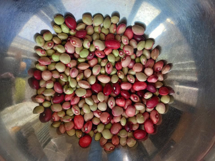 까놓은 울타리콩이 울긋불긋 화려한 옷을 입었다. 초록 꺼풀을 벗어버리고 나니 새로운 모습이다.