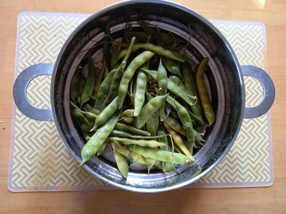 쪄서 먹으면 맛있다고 해서 울타리콩을 꼬투리째 쪘다. 겉껍질이 물렁해지니 까먹기도 쉽고 맛도 있다. 까느라 손가락이 아픈 것도 잊어버리고 그 맛에 취한다. 포슬거리는 식감과 고소함이 입안에 그득하다.