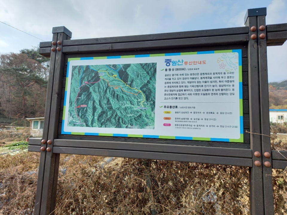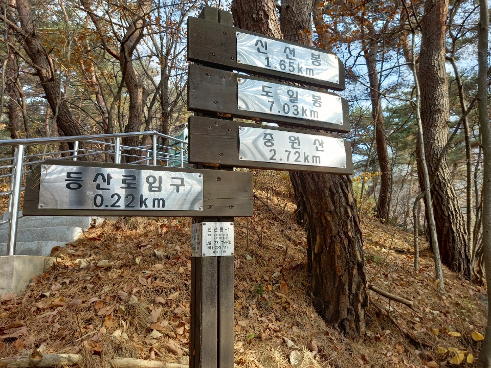 가는 길에 중원산으로 가는 길 표지판도 있다. 더 올라가니 너른 운동장을 지닌 펜션도 나온다. 또다른 등산로 표지판이 나와서 따라가니 작은 암자로 가는 계단을 발견하여 올라갔다. 어느 보살님들이 암자로 가는 길이 편하도록 화강암 계단을 놓은 것같다. 올라가는 입구에 기념비가 세워져있었다.