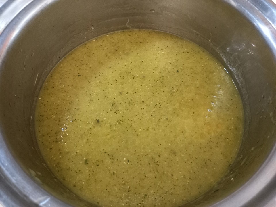 단호박죽은 겉껍질을 베끼고 해야 진노란 빛을 띠고 먹음직한데 나는 겉껍질까지 모두 넣고 끓였다.