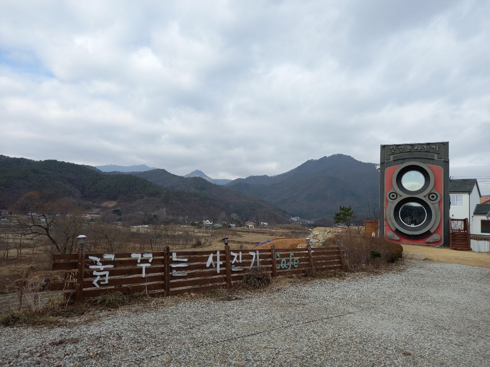 오면서 못 가본 꿈꾸는 사진기 카페에 들렸다. 오늘이 휴업이라서 실내에는 들어가지 않고 밖에서 사진만 찍었다. 바로 옆 위에는 귀촌한 현대식 전원마을이 들어서있다. 꿈꾸는 사진기 카페는 자신의 꿈도 써서 붙일 수 있는 카페라고 한다.