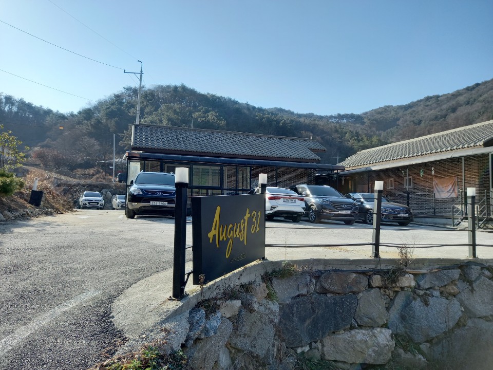 오거스트31 펜션카페에서 산으로 올라가는 길이 막혀있어 더 못 갔다. 수양관으로 가는 길로 올라가면 괘일산이다. 펜션주차장에는 차량이 예닐곱대 있는 걸로 봐서 어제부터 묵은 사람들이 좀 있는 것같다. 펜션 뒤쪽이 요셉의 집이다.
