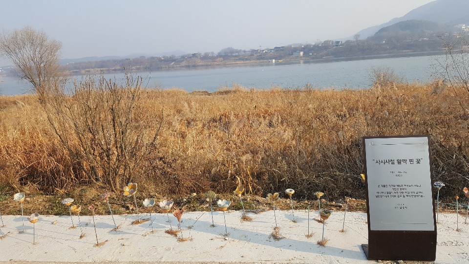 세월초등학교를 지나서 작은 다리를 건너 여주 전북리로 가는 삼거리에서 강변으로 가는 옛나루터길로 들어서면 나온다. 역시 주차할 곳은 없는 곳이라서 길가에 주차를 했다.