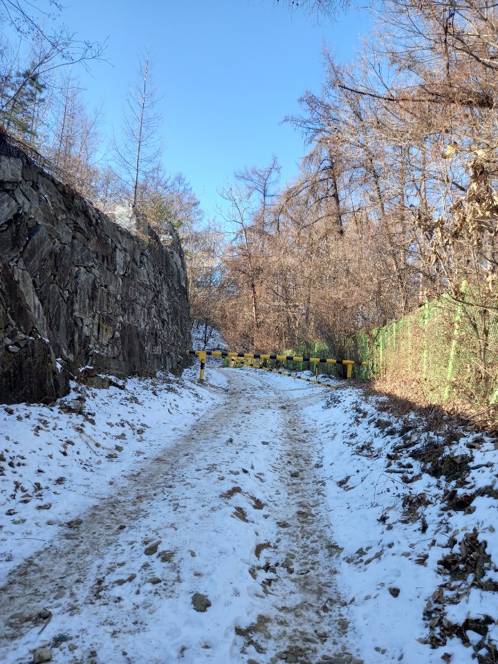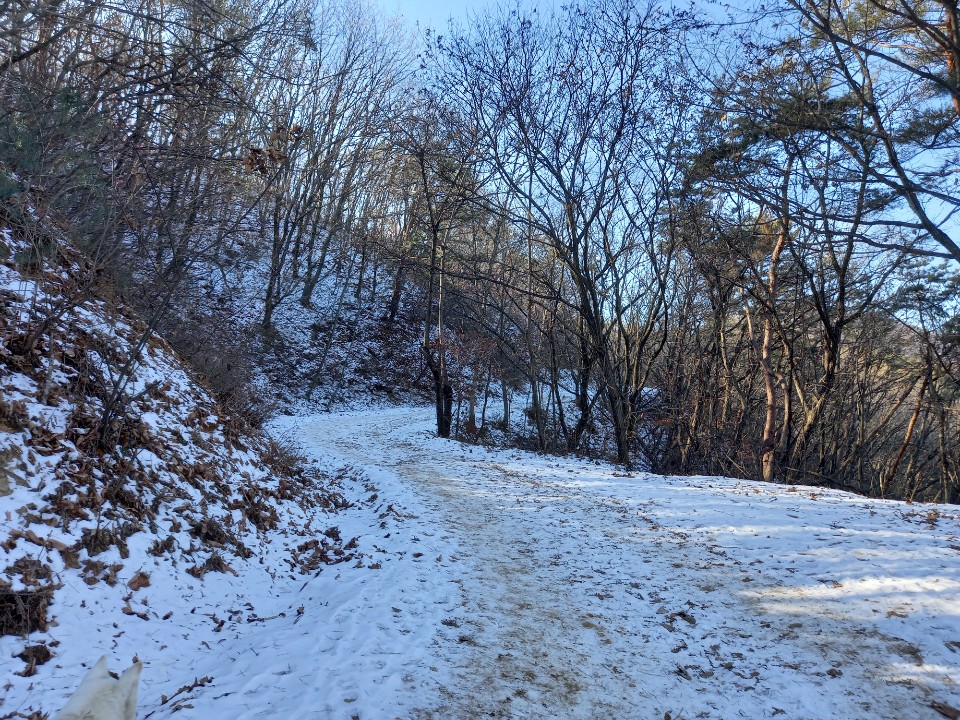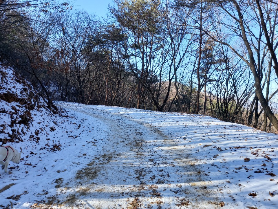 산중옛길로 가는 임도에 갔다. 몇 번을 와도 새롭게 다가오는 산길이다. 일주일 전에 내린 눈이 녹지 않고 하얗게 길위에 눈길을 만들어놓고 있다.