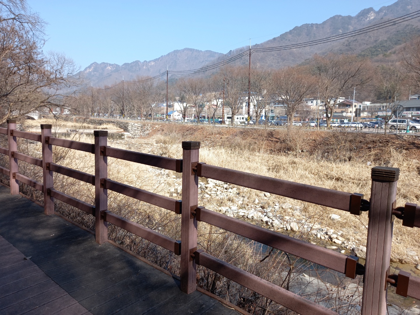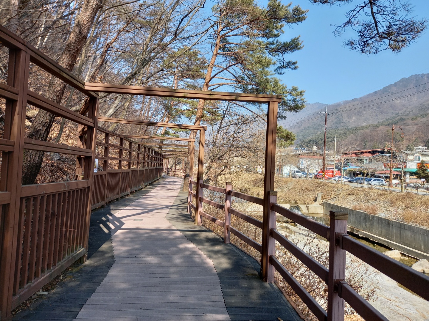 하천의 양쪽으로 길이 있는데 주차장쪽이 아닌 반대쪽 산쪽으로 산책로가 조성되어 있었다. 주차장도 넓어서 주차장에서 빠져나와 산책로로 들어가 산책하고 나오는데 20분정도 걸렸다. 짧은 길이었지만 하천과 함께 걸으니 괜찮았다. 또한 건너편의 주차장과 많은 식당을 보면서 사람이 많아서 식당에는 갈 수 없겠다는 생각도 했다.