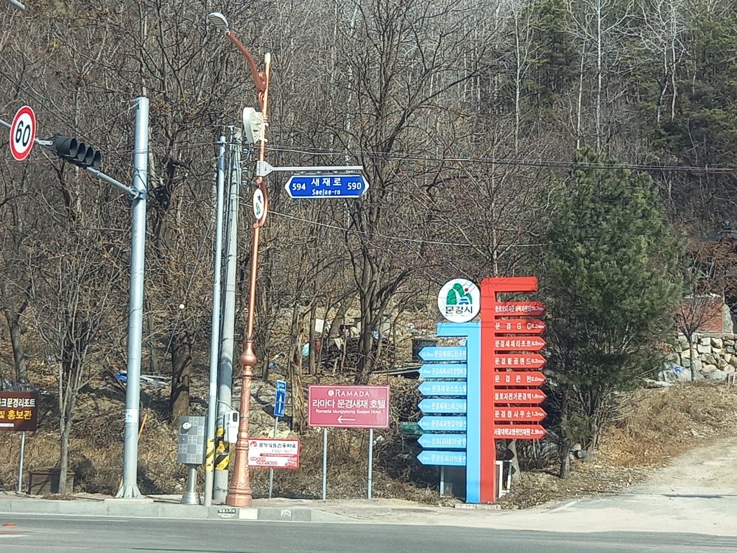 문경 시내로 들어가서 새재길따라 가는데 문경의 관광지를 알려주는 도로표지가 눈에 띄게 특이하여 사진을 찍었다. 관광지다운 면모를 보여주는 일면이다.