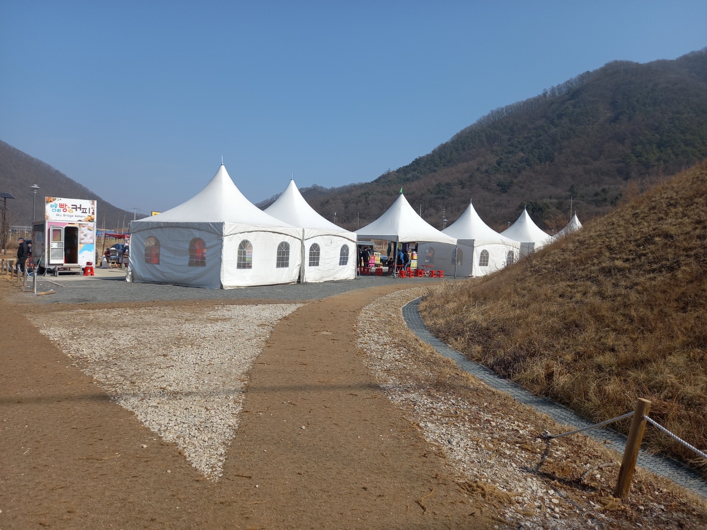 다리 밑 넓은 터에는 간식을 파는 부스가 여러 개 있어서 골라 사먹을 수가 있다. 계단을 이용하여 둥글게 올라가니 한탄강을 건너는 긴 다리다. 중간중간 투명 유리바닥과 사람들이 걸을 때, 바람 불때마다 흔들려서 약간의 긴장을 자아내는 곳이다. 다들 재밌게 건너갔다 온다.