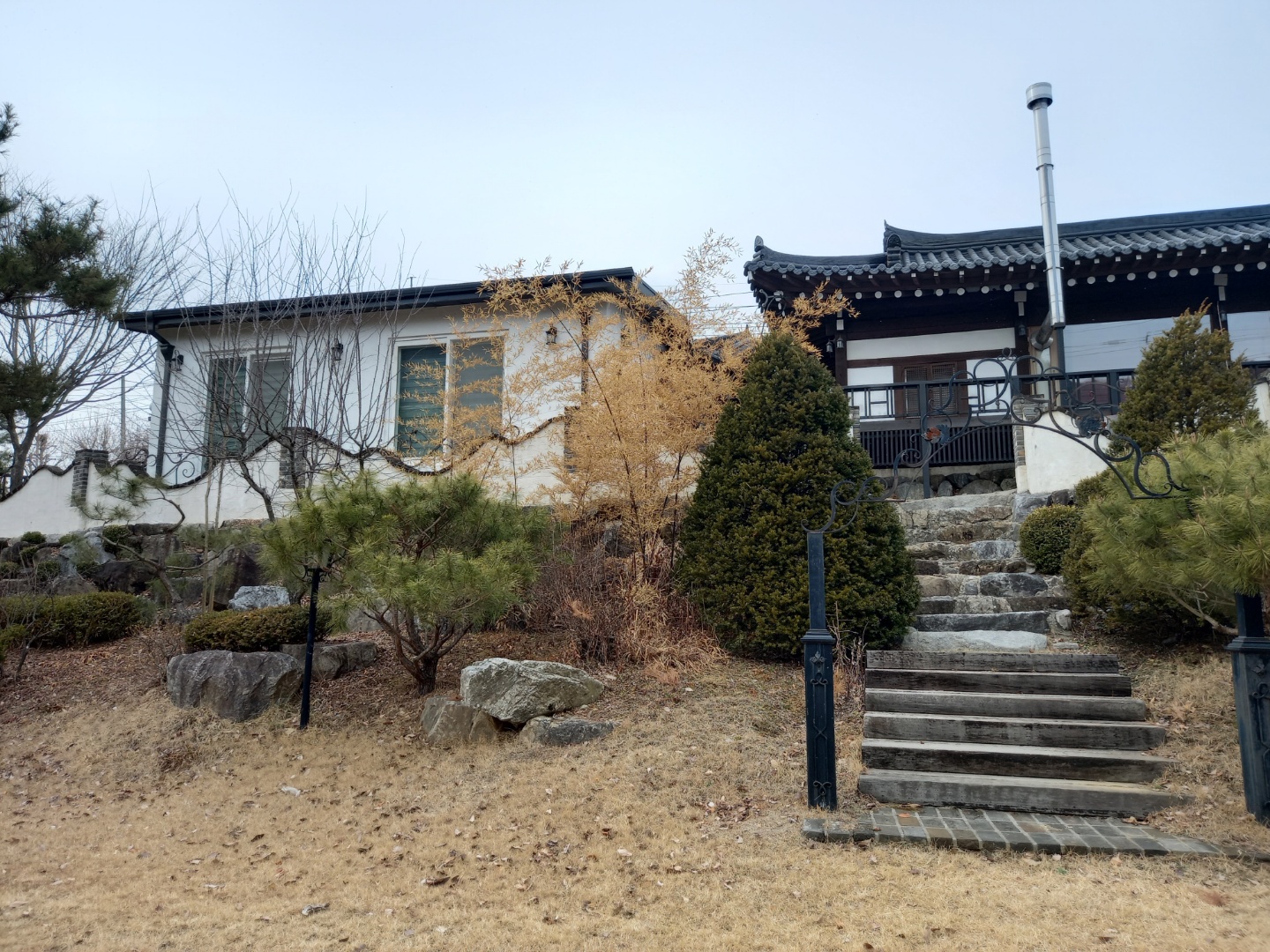 식당을 나와서 바로 옆에 있는 식당 주인의 한옥집을 마당에서 보았다. 물려받은 것이라는데 담장이 특이한 곡선으로 이루어져 있다. 남에게 빌려주고 옆의 작은 집에서 산다고 한다.
