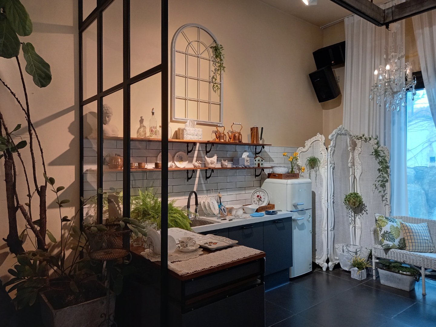 넷이서 셀러드와 피자, 연어 볶은 밥 치즈그라탕 두 개를 먹었다. 맛있게 싹싹 먹어대니 주인도 좋아한다. 남기기라도 하면 식당 주인들은 마음이 쓰인다고 한다. 혹시 맛이 없어서 그런가하면서 말이다. 양식을 먹으니 저절로 더 커피가 당긴다. 바로 갈아서 내리는 커피를 마시고 식당 둘레의 장식품들을 둘러본다.