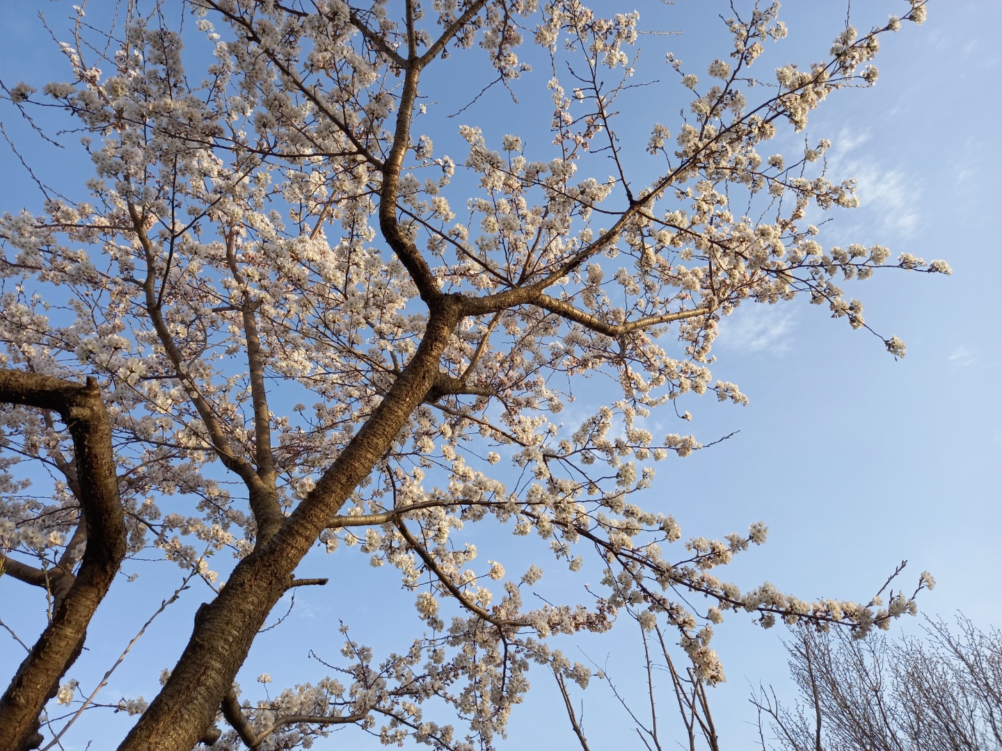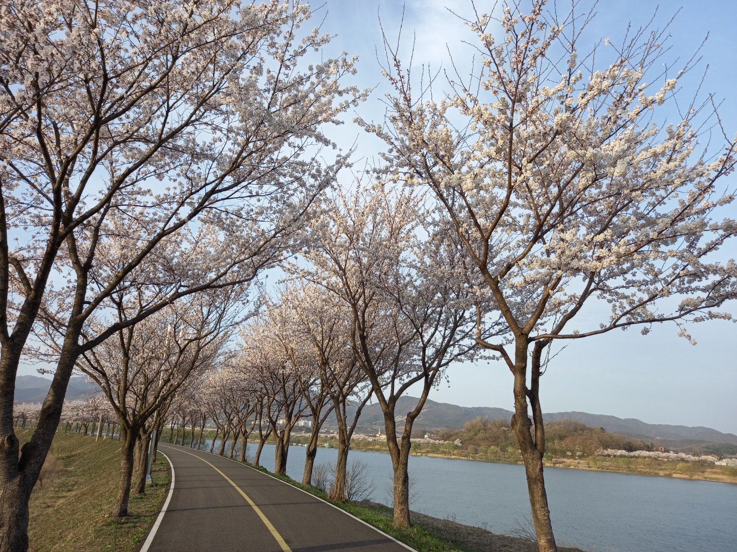 옆집에서 키운 벚나무가 하얀 벚꽃을 무수히 달고 빛난다. 멀리 강둑에도 벚꽃은 화려하게 수를 놓았다.