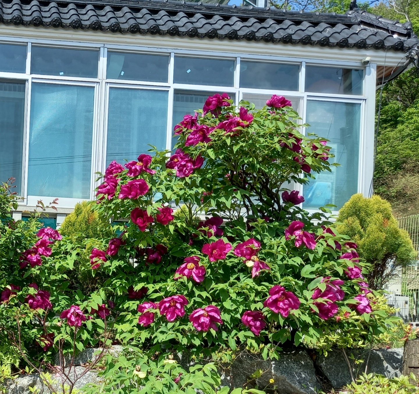 주차할 곳을 찾다가 건축자재를 조금 쌓아놓은 곳 옆에 주차하고 반대방향으로 내려왔다. 어느 주택에서 화들짝 놀란 것마냥 활짝 펼친 모란꽃을 보니 봄의 여신을 본듯했다. 벚꽃이 지며 봄은 이제 다 갔구나 했는데 아직 피어있는 모란을 만나서 반가웠다.