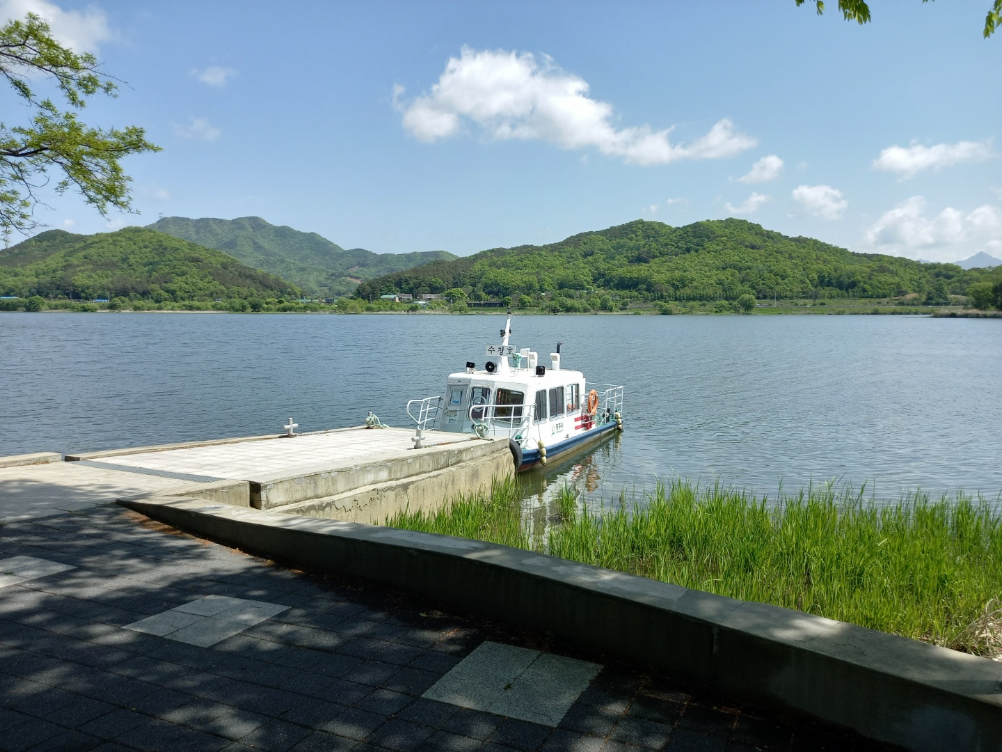 수청나루에는 배 한 척이 대기중이다. 혹시나 사고가 생길 경우 안전을 위해서 있다. 참 좋은 생각이다.