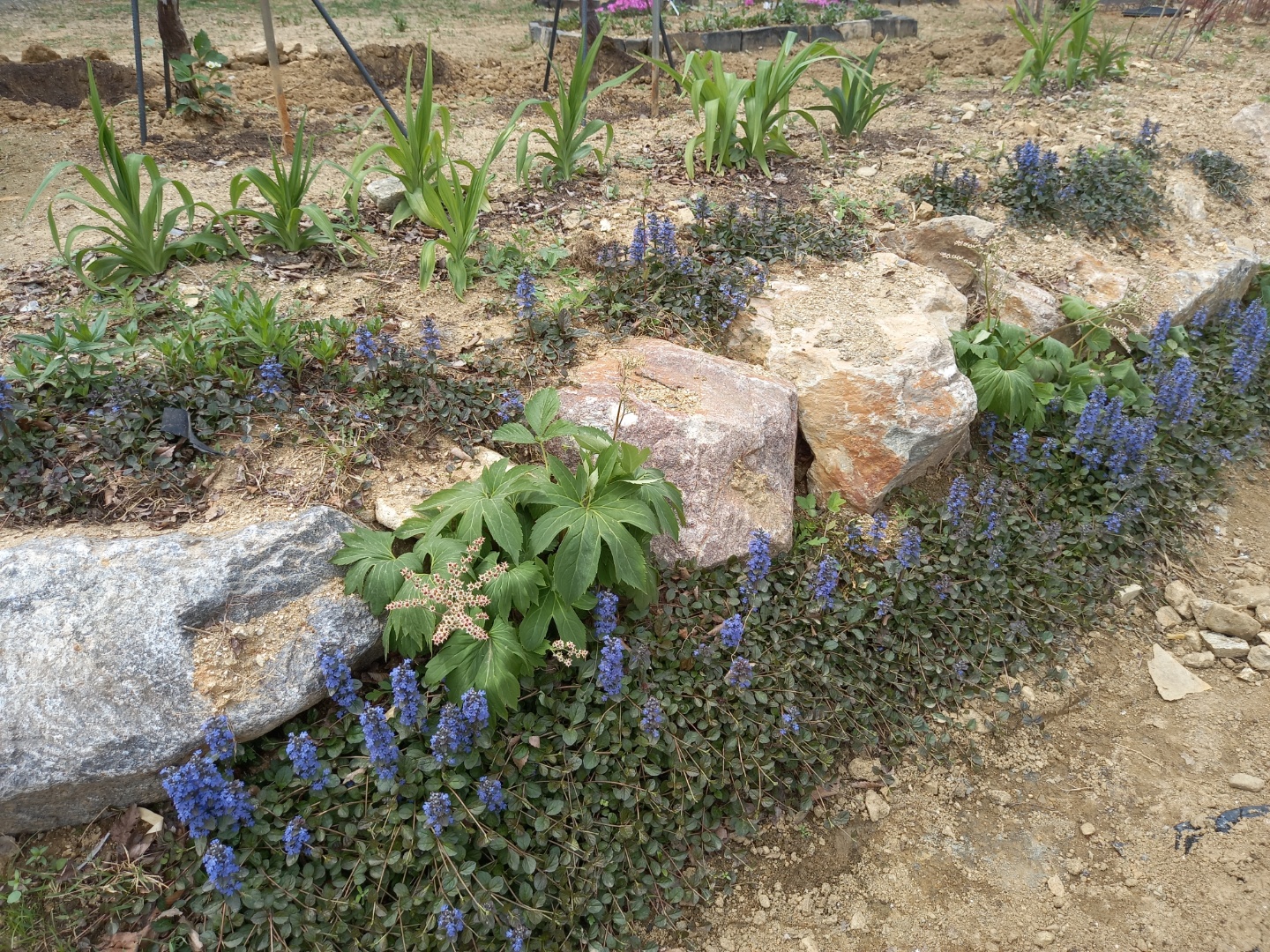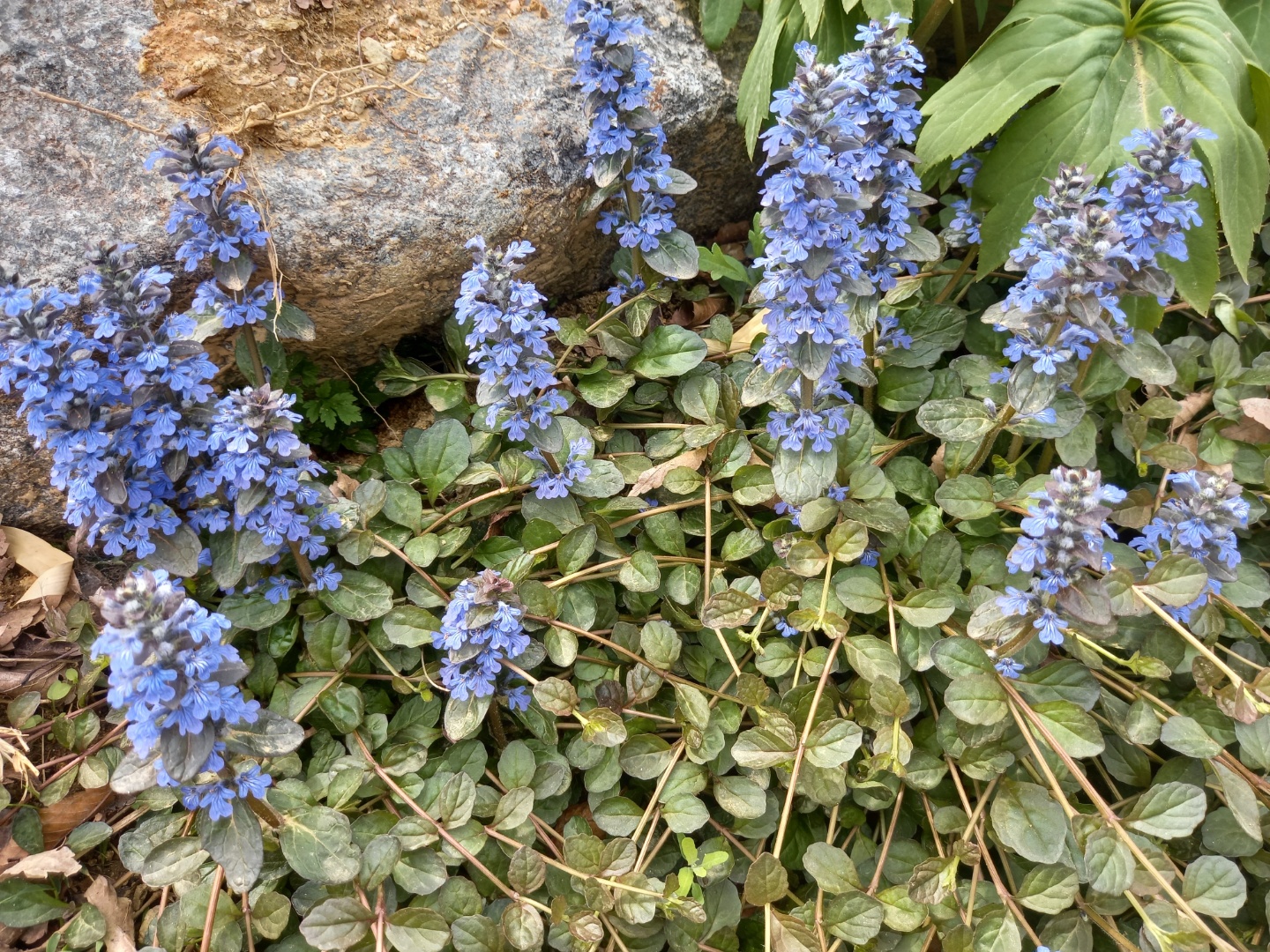 또 한가지 아주가라는 꽃이 있다. 마찬가지로 지피식물인데 이파리는 진한 녹색인데 꽃은 팔센티정도 올라오며 핀다. 보랏빛 꽃이다. 이것도 물만 잘 주면 잘 자라고 딸기처럼 줄기를 뻗어서 나간다. 마치 발이 달린듯하다. 주차장과 텃밭의 경계에 석축이 있는데 그 밑에 심어두었더니 올해 무척 많이 자랐다.