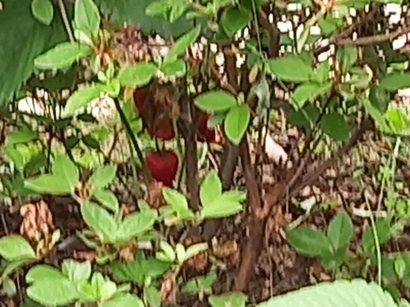 지피식물로 딸기를 심었더니 해마다 딸기를 따 먹는 재미가 있다. 딸기도 숨을 쉴 틈을 주지 않는다. 옆에 있는 돌단풍보다 더 크고 있다. 빨갛게 익은 딸기를 따면서 옆으로 침범한 것들은 과감히 뽑아주었다. 너무 습해서 모기가 성하다.