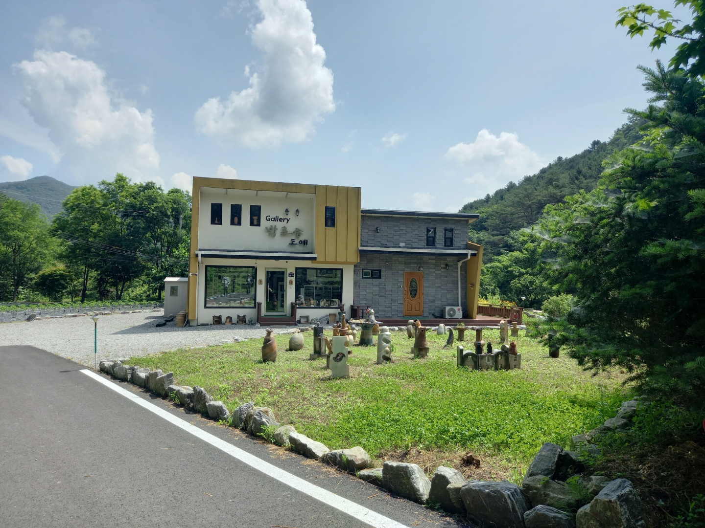 다시 삼거리에서 우측으로 가면 박초승도예갤러리가 있다. 옹기 세 개를 쌓아 도로에 장식하기도 하고 정원 마당에는 도예작품이 십여개 이상 설치되어 있다. 하나 하나 자세히 보면 작품성이 보인다. 작품제작에 몰두하는 작가가 떠오른다.