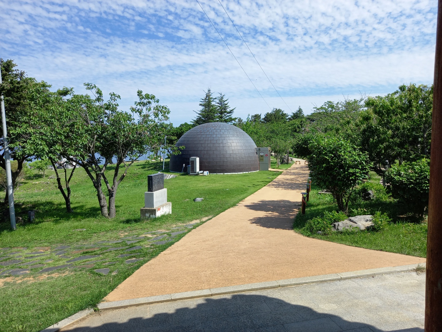 더운 날씨지만 등기산은 산인지라 나무 그늘도 있고 자연스런 산책길과 예술작품, 등대모형이 있어 힐링되는 장소로 좋다. 바닷가로 뻗어나간 투명 스카이워크까지 갔더라면 더 좋았을 것이다.