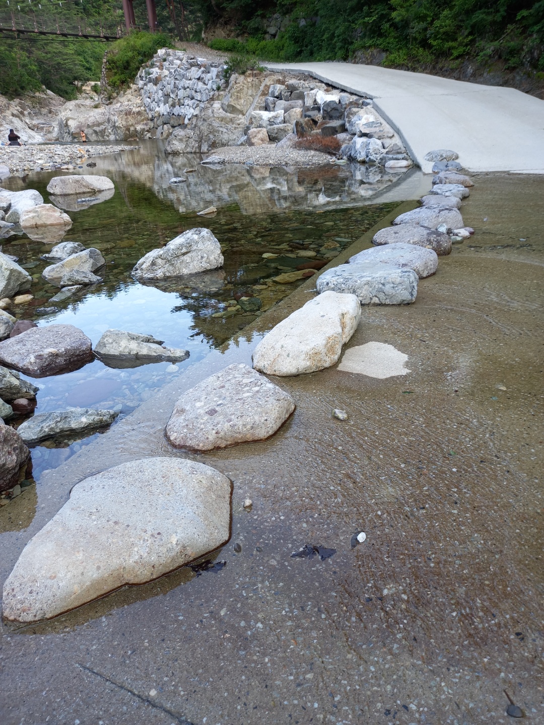 신선이 살만한 곳이라니까 아마도 깊은 계곡이 아닐까했다. 입구에는 주차장도 있고 계곡을 따라 소나무와 절벽과 개울물이 함께 안내하는 곳이다. 후포항에 들럿다가 가니 좀 늦은 시간이라서 사람들은 별로 없어 조용했다. 더운 여름날이 되면 관광객이 많을 것같다. 맑은 물에서 수영하며 노는 사람들이 있다.