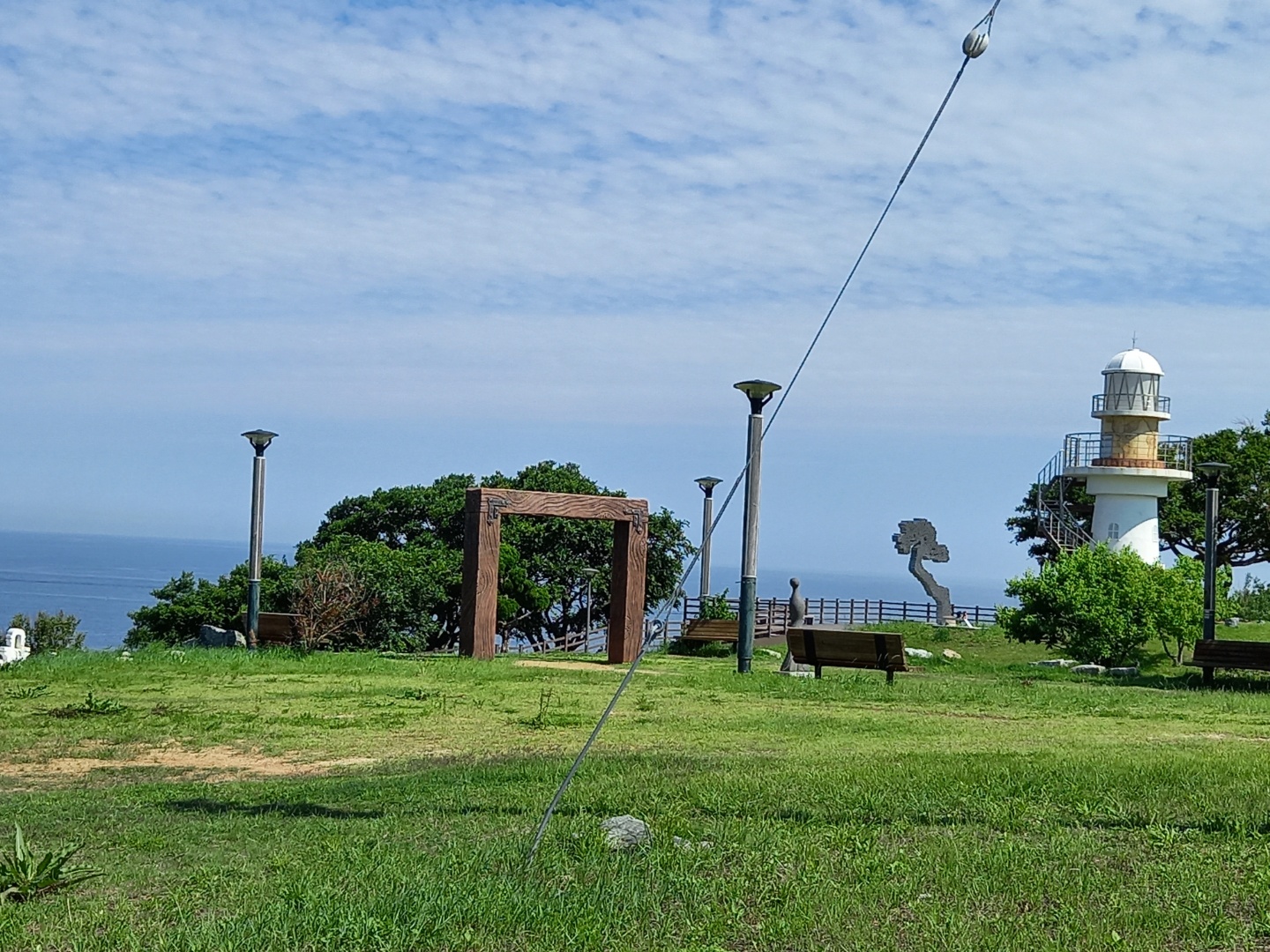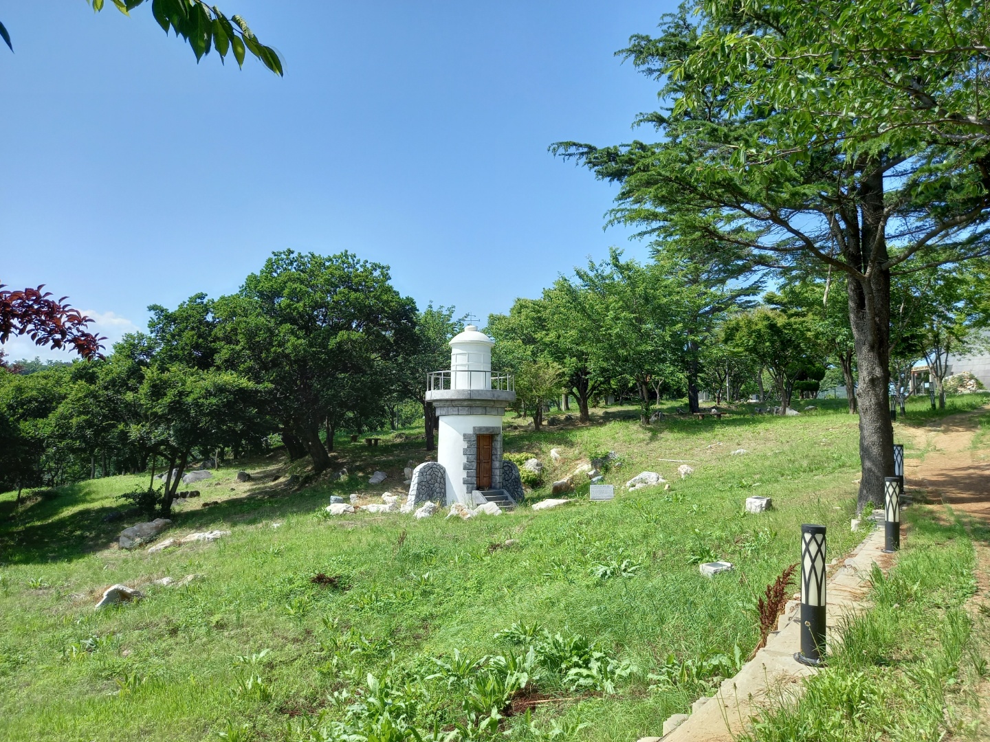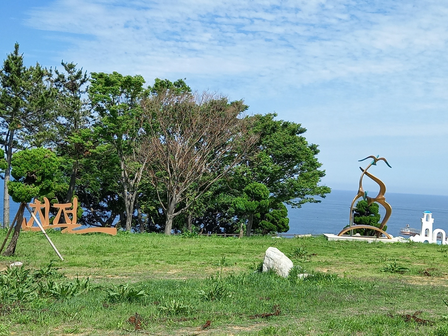 등기산에는 등대가 있고 주변에 군데군데 다른 지역의 유명한 등대를 축소해서 세워놓아 기념비가 되었다. 좋은 생각이다. 지역 예술가들의 에술작품도 설치되어 재미있게 보았다. 특히 '11시 30분'이라는 작품은 새로운 발상이다. 두 사람이 둥근 원안에서 시계바늘이 되어 중심에서 만나는 모습이다.
