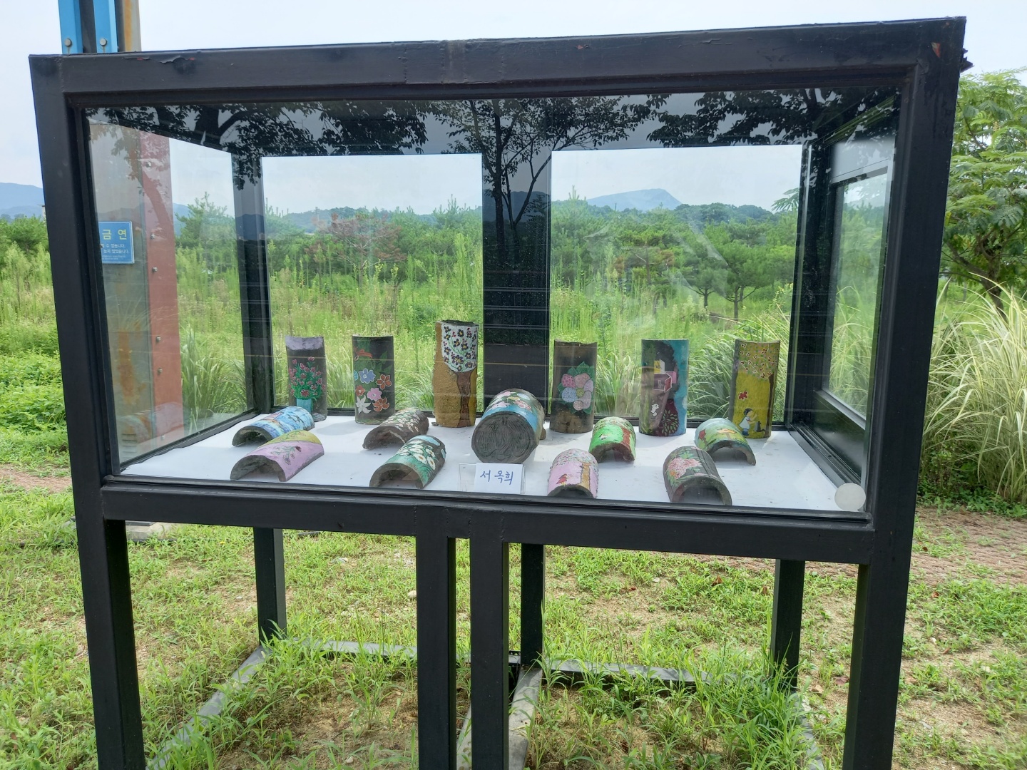 햔뼘 갤러리에 자신의 작품을 전시한 서옥희 작가도 대단하다. 기와에 그린 그림들이다.