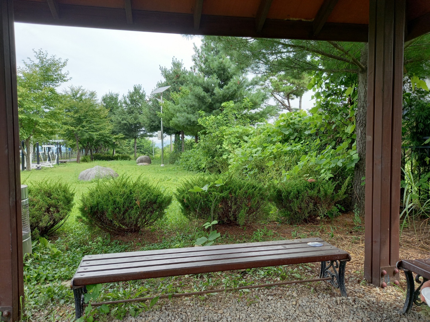 산언덕길은 공원입구가 아닌 읍사무소옆으로 난 언덕길로 올라가면서 주차장까지 연결된 길도 있고 지그재그로 산책길을 언덕에 만들어놓은 길로도 올라갈 수 있다. 두 길 모두 주차장을 거쳐서 계단을 내려오면 입구로 가는 길과 만난다.