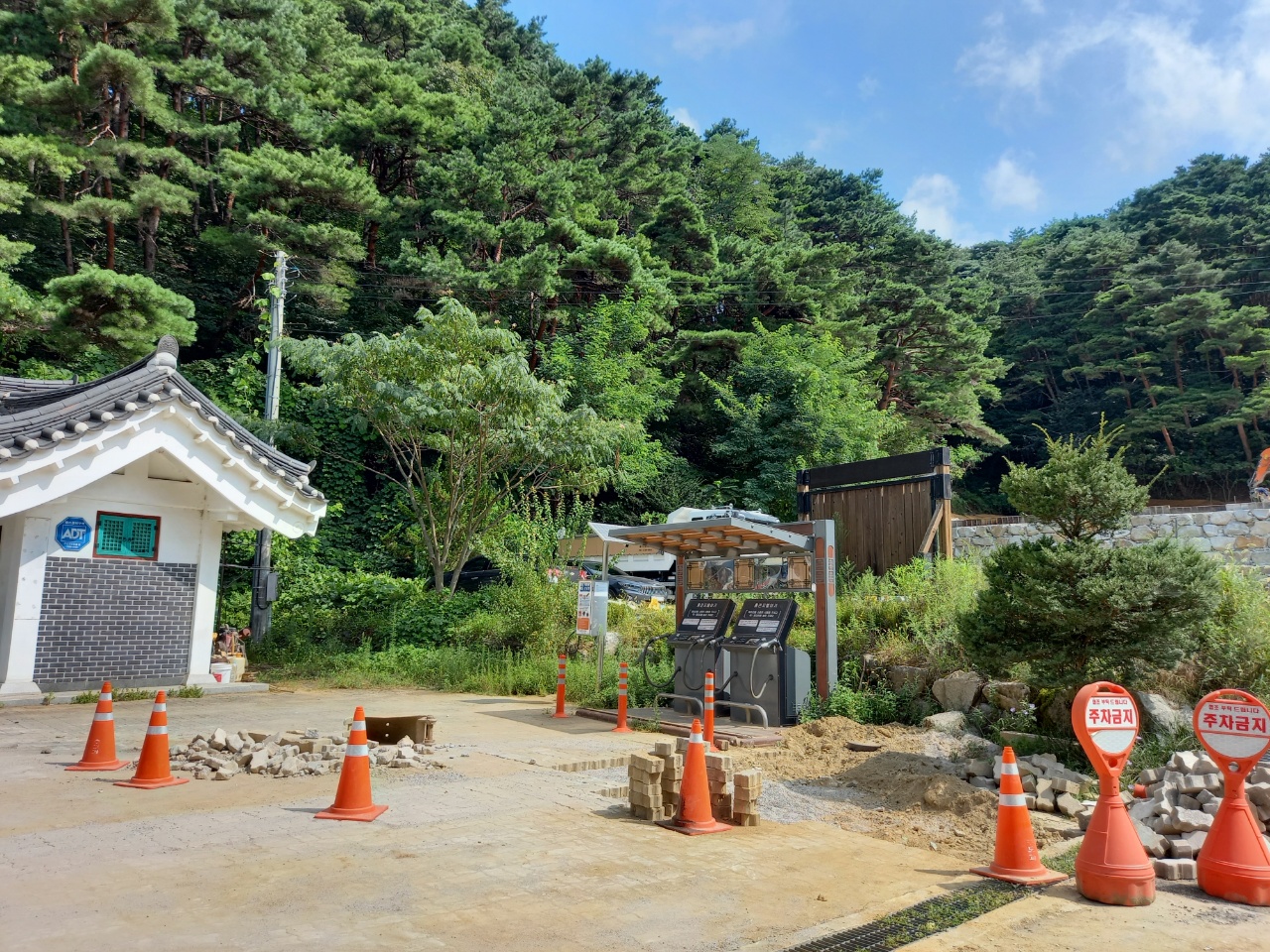 반려견을 데리고 온 처지라 할 수 없이 황골마을 방향으로 가려고 안내하는 화살표대로 약간 올라갔다. 공사중이라 길을 모르겠는데 중장비로 작업하시는 분이 알려주시며 공사하는 곳을 건너가서 층계로 올라가라 하신다.