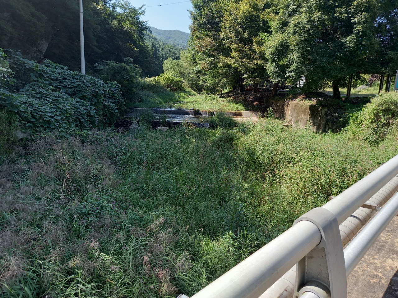 오는 길에 양자산입구에 있는 물가에 우리 개는 들어가 물놀이를 했다. 주차한 부분에 있는 수로에도 또 들어가 한동안 물놀이에 빠져 나올줄을 몰랐다.