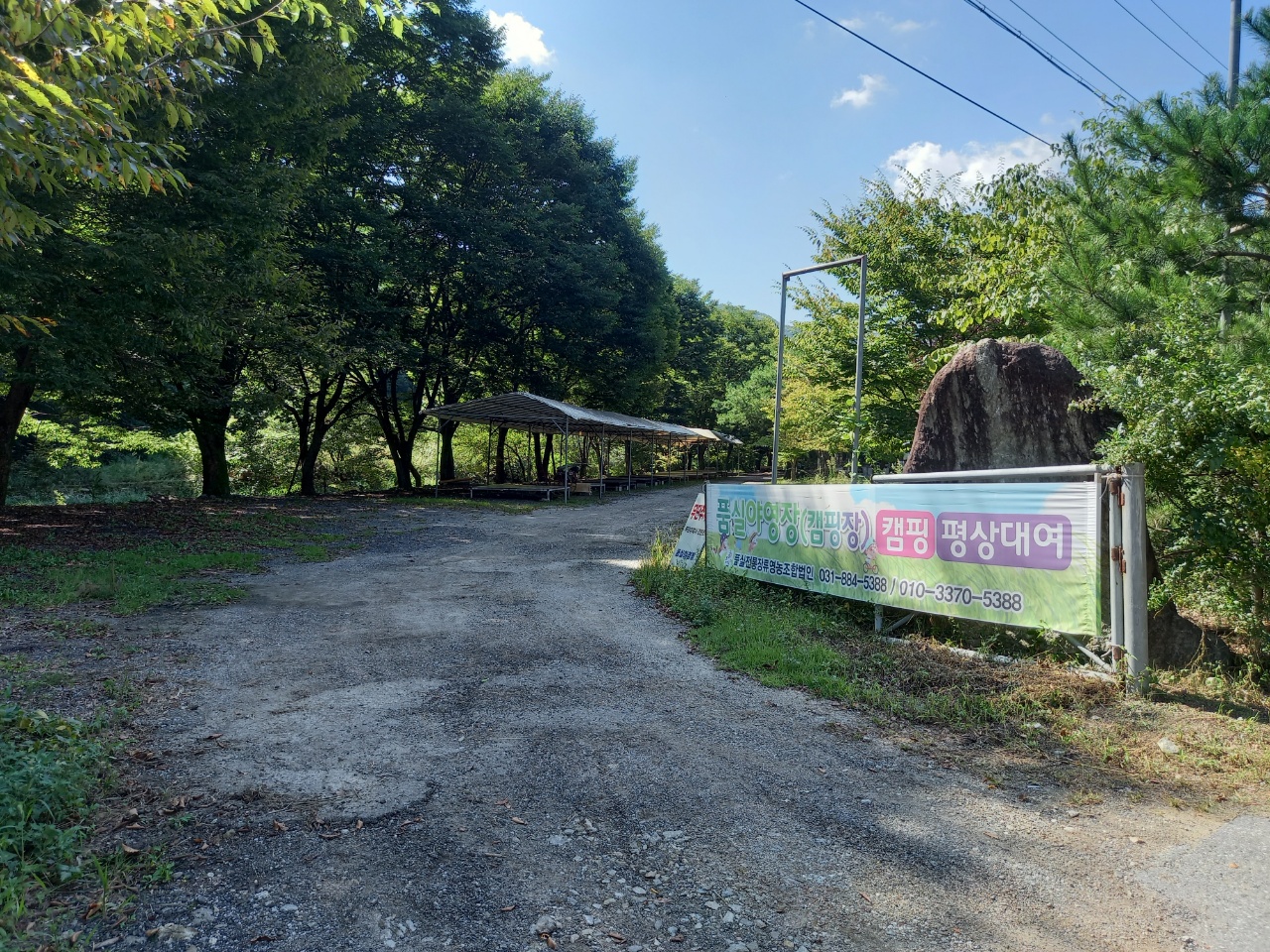 작년과 마찬가지로 길가에 있는 품실야영장이 비어있다. 건너편에 카페에는 커피를 마시러 온 사람들로 주차된 차들이 여러 대 있다. 숲속카페라 운치가 있는 곳이다.