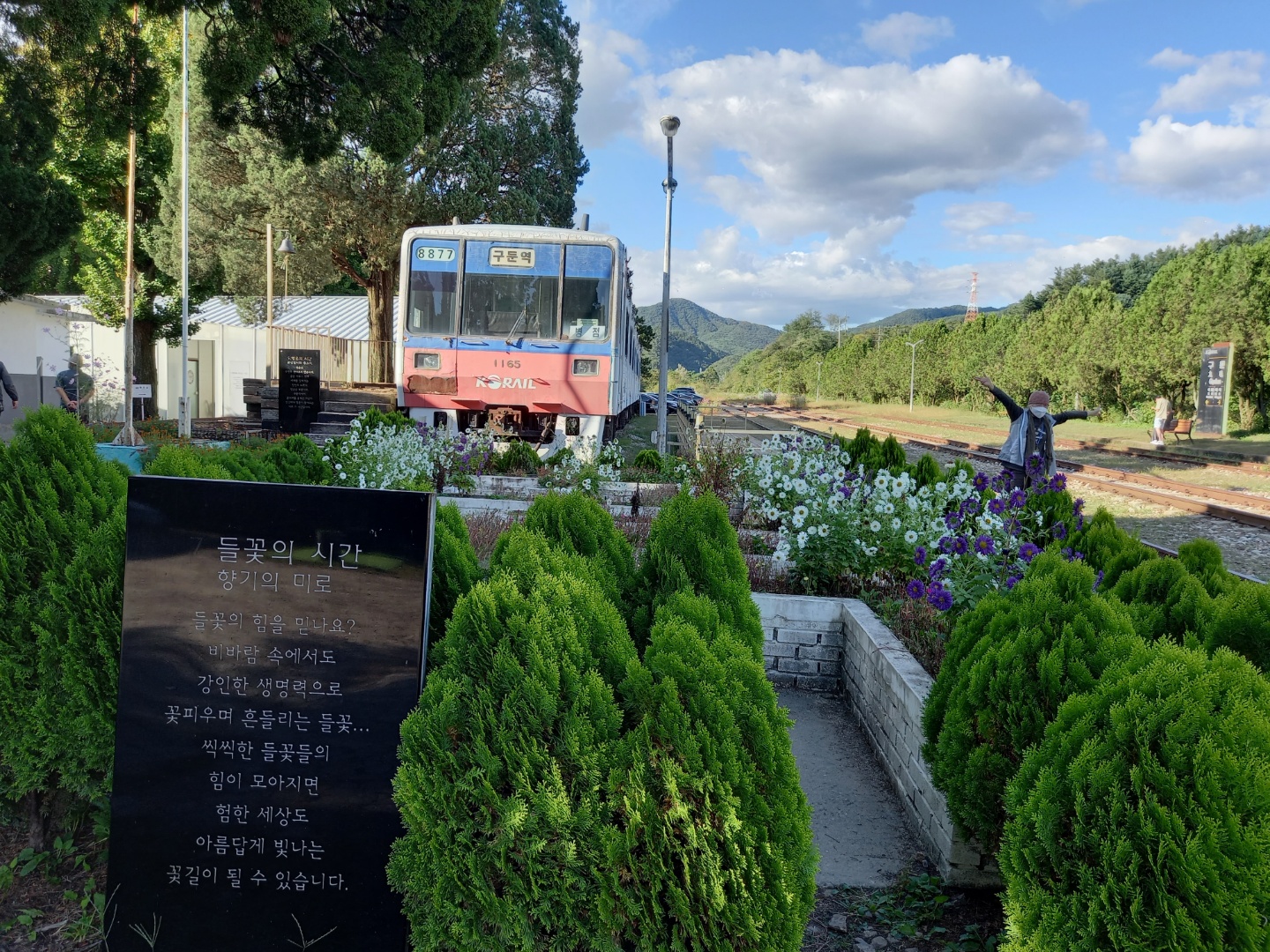 구둔역 광고판에 보면 단풍든 노란 은행잎이 휘날리는 모습이 보인다. 아직 단풍이 들지 않았지만 구둔역은 역시 추억을 다독거리는 작고 아름다운 역이다.