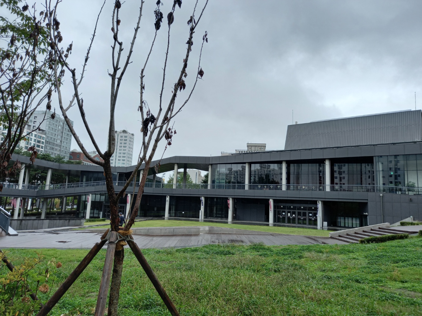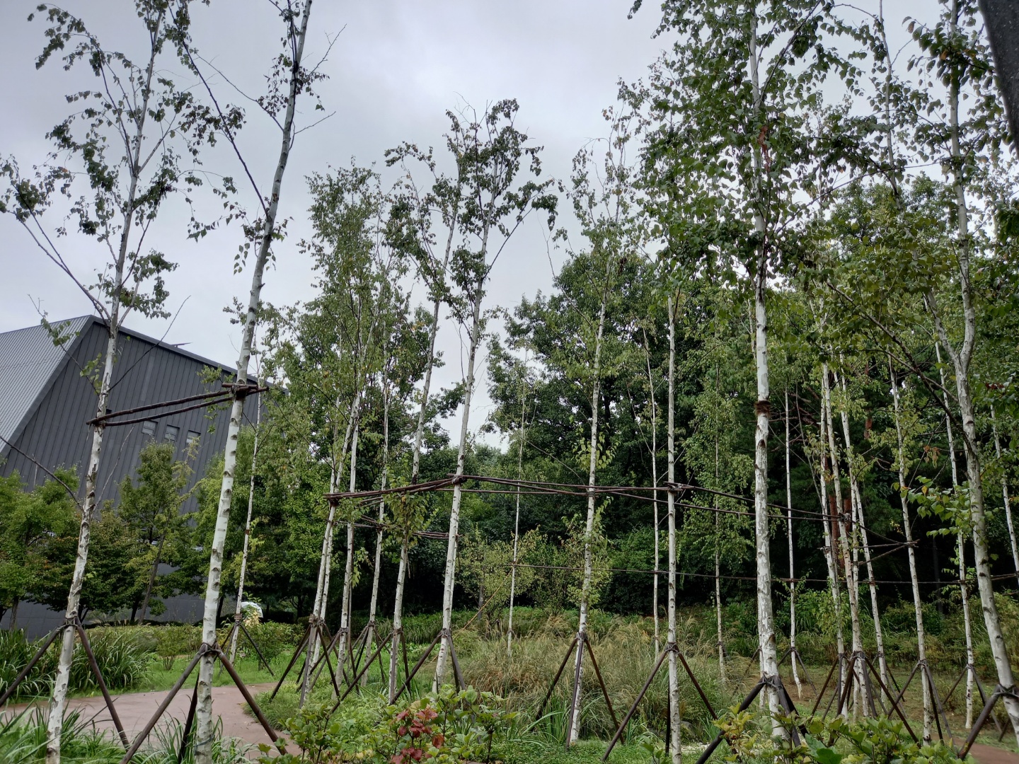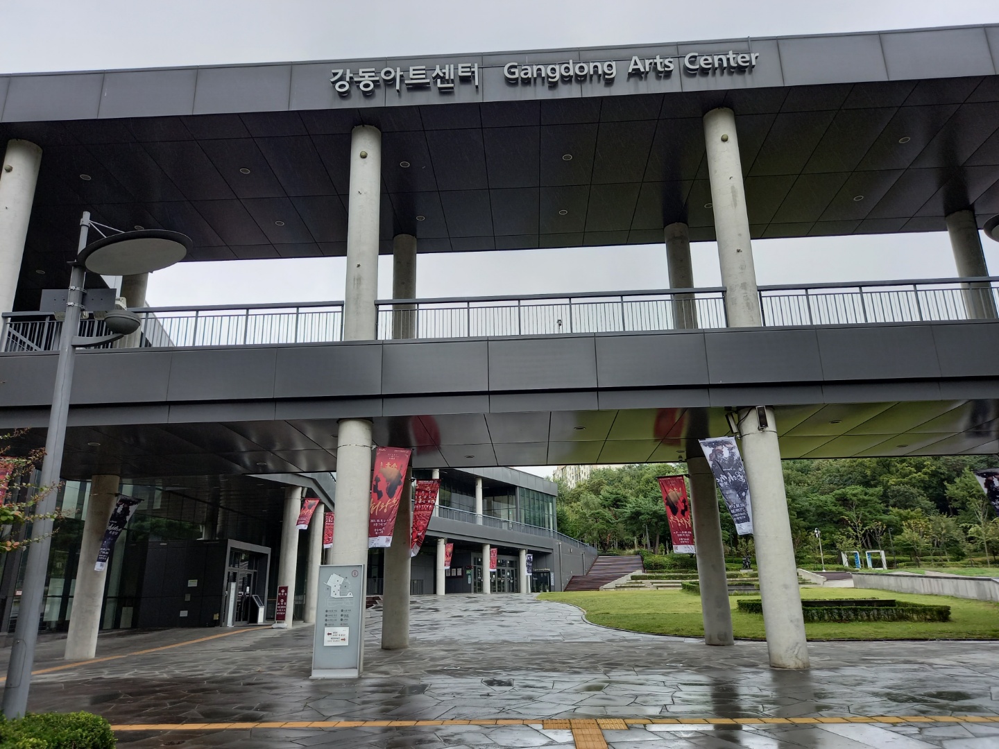 숲길을 이리저리 돌아서 강동아트센터까지 왔다. 자작나무를 심어가꾼 곳도 있고 반짝이는 조형물도 있다.