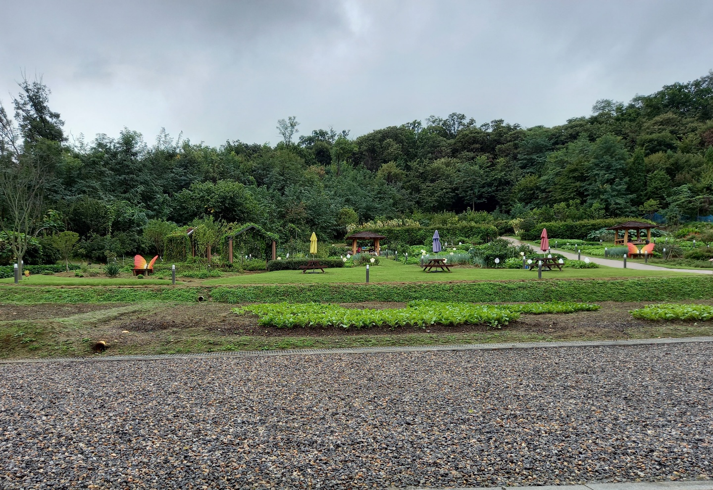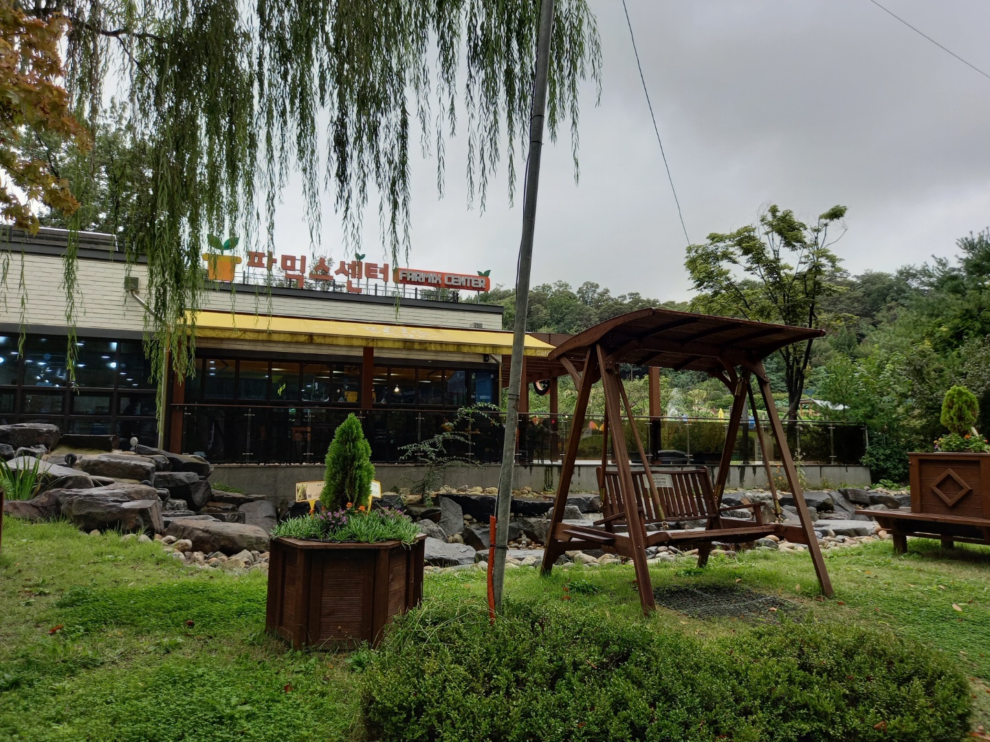 친구가 이끄는 대로 걸어서 간 곳은 파믹스센터였다. 강동구에서 운영하는 텃밭이다. 주말농장식으로 분양을 해주는 곳인데 친구도 땅 한 귀퉁이를 받아 채소를 키우고 있다. 쉼터가 여러 곳에 있어서 간단한 음식을 가져와서 먹을 수도 있고 커피 음료를 사서 마실 수도 있다.