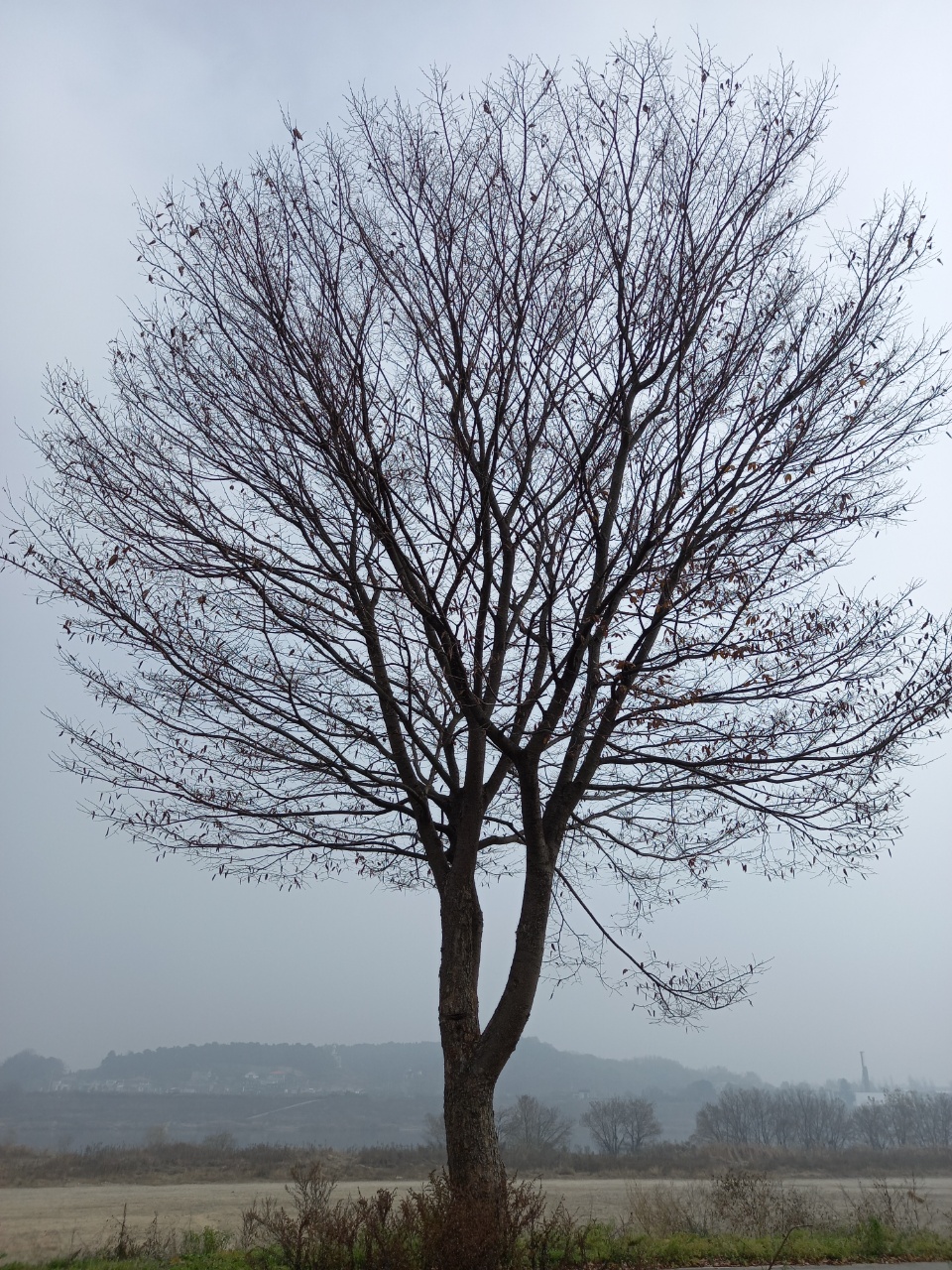 이파리가 다 떨어져서 가지만 남은 나무가 뿌연 하늘에 수많은 팔을 뻗으며 서있는 모습은 완연한 겨울나무다. 아직 겨울이 오지 않은 따듯한 날인데도 나무는 이미 겨울 준비를 마친 것이다.