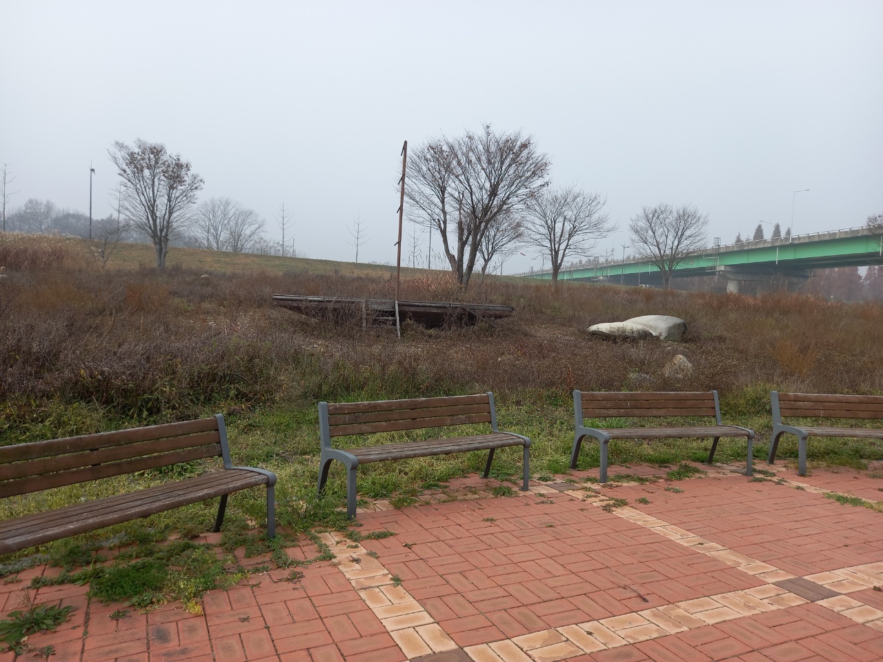 하늘이 뿌옇게 흐린 날, 안개가 자욱한 날에 강가를 걸으며 무념무상에 잠겨본다. 마스크를 단단히 쓰고 천천히 걸으며 갈대숲도 보고 점점 핏기를 잃어가며 말라가는 풀들을 본다.