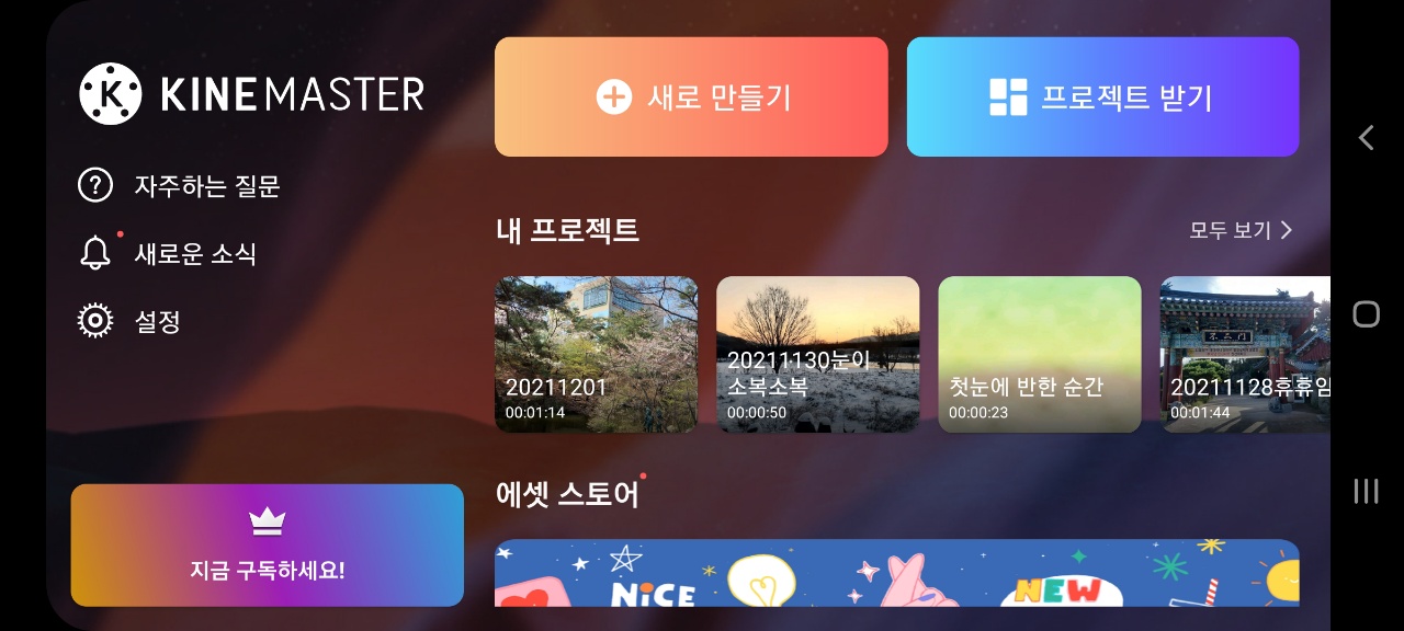 매주 금요일 배우고 나면 강사님은 과제를 주신다. 과제를 강사님이 운영하는 네이버카페에 올리거나 카톡에 올려놓는다. 다음 주 강의가 끝나고 마지막에 꼭 과제를 한 사람들만 올려서 추첨판을 돌린다. 당첨되면 커피 한 잔 쿠폰을 주신다. 키네마스터 한 달 이용권을 주신 적도 있다. 그 때 내가 당첨되어서 키네마스터 프리미엄 사용자로 한 달을 살았다.