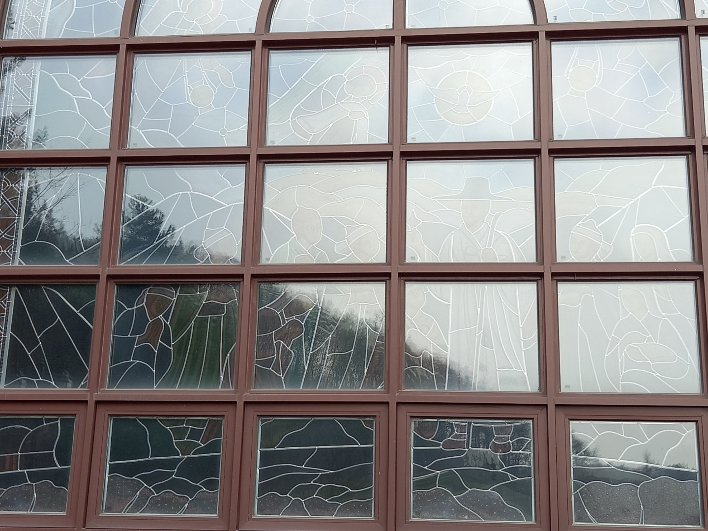 반려견은 들어갈 수 없는 곳이라 같이 간 남편이 돌보게 하고 성당을 구경하고 언덕을 올라갔다. 성당 유리창에 그려진 스테인드글라스의 바깥 그림이 하얀 선으로만 보이고 그곳에 하늘과 산이 내려와 있는 게 신기했다.