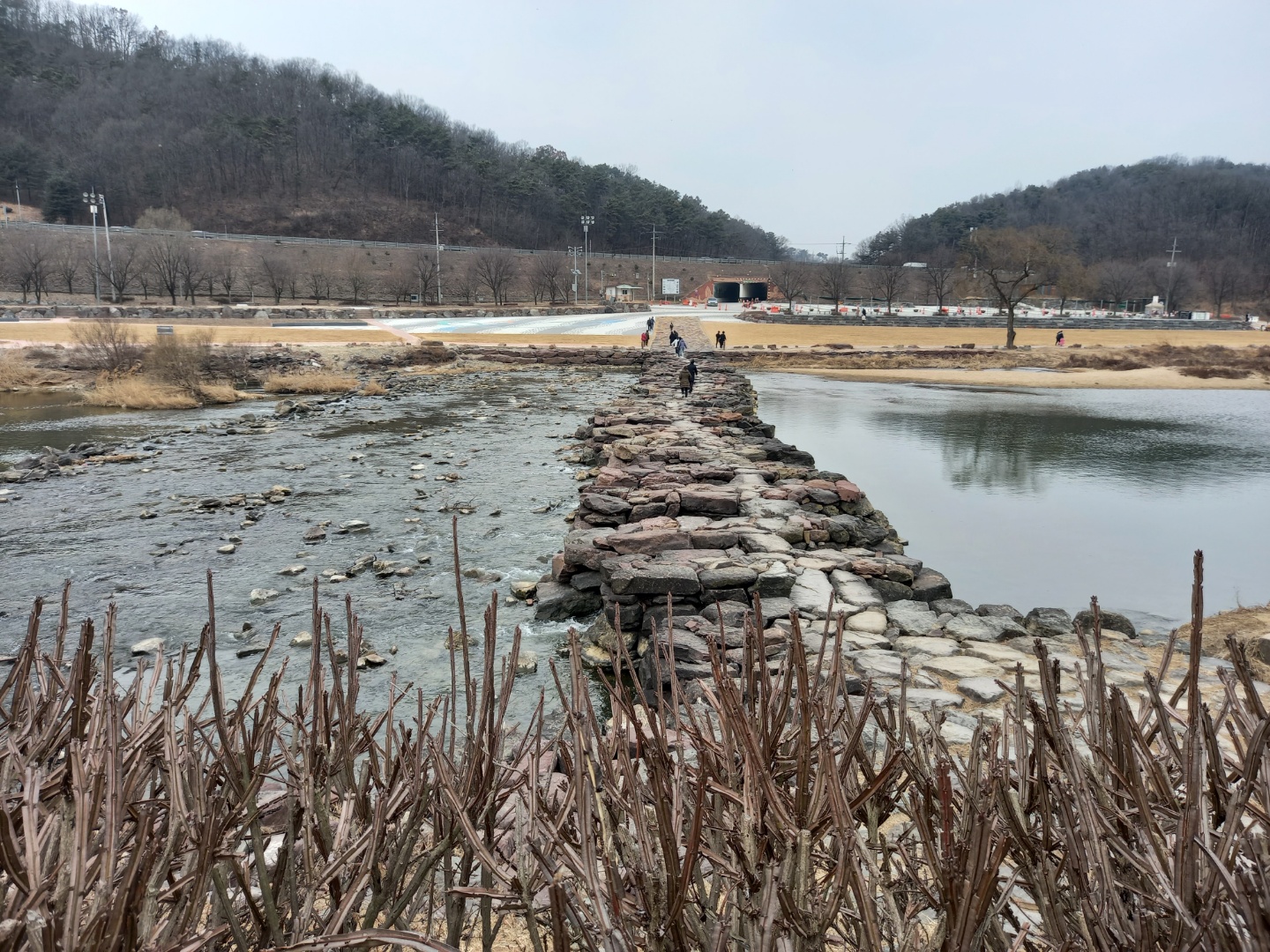 주차한 곳 가까이에 징검다리가 있어 강아지와 같이 건너갔다. 돌다리인데 생각보다 넓어서 같이 건너갈 수 있었다.