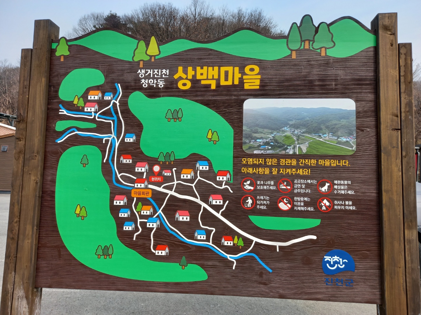 상백경로당이 있는 마을회관 앞에서 지도를 보니 ‘생거진천 청학동’이라고 적혀있.다 청학동에 오긴 온 거다.