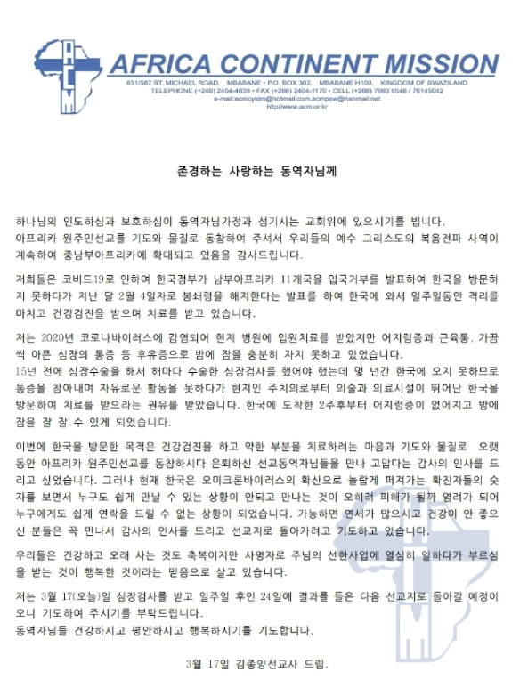 | 아프리카 에스와티니 김종양 선교사 편지 (0) | 2021.12.14 |